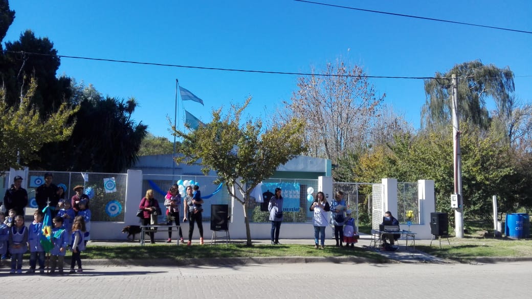 Frente al Jardincito 903 de la localidad de Villa Moll que este año cumple 50 años, se celebró por la tarde el cumpleaños de nuestra Patria. En forma conjunta fue realizado por la Escuela Nº 19 José Manuel Estrada y el Jardín Arribeños.