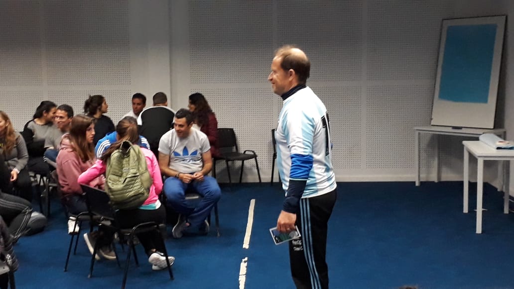 El D.T. Pablo Calderón visita Navarro. Conferencia de Prensa y posterior charla y actividad