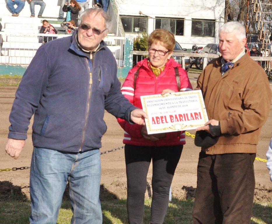 Este domingo hubo carreras en distintos hipódromos, pero la atención de los navarreros estuvo centrada en una en particular, el clásico para ejemplares de primera categoría de Chivilcoy. El hipódromo de esa ciudad, reconoció a quien, como muy bien ellos mismos llamaron, ya es una leyenda del trote, Abel Barilari. Además de entregarle un presente, la principal carrera de la tarde, llevó su nombre. Muy merecido. Felicitaciones Abel y familia.