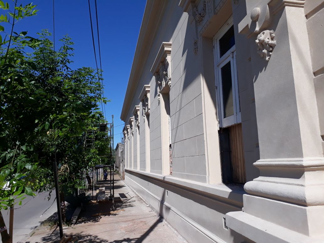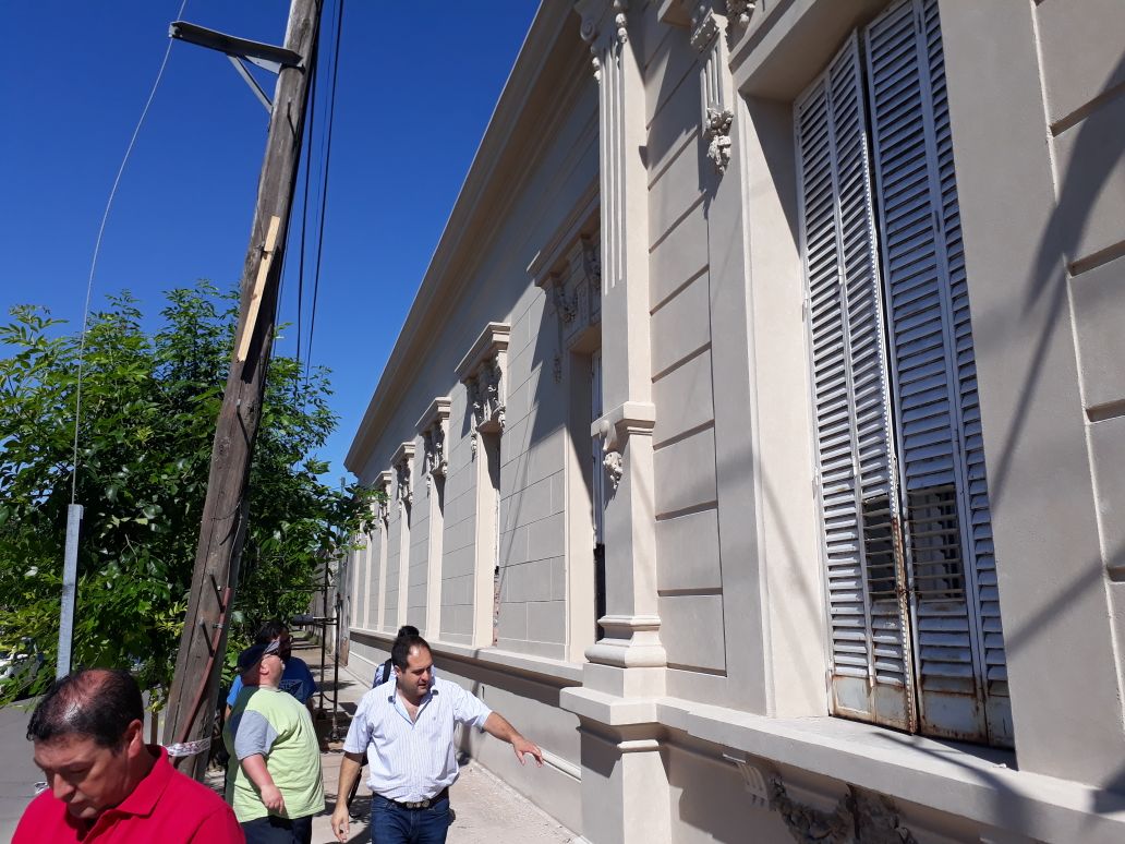 A las 9 de la mañana comenzamos observando la fachada del edificio municipal que ya tiene 105 años de historia. Recuerda Santiago que quien está restaurando la misma es quien restauró la Basílica de Mercedes, y también trabajó en Casa de Gobierno, en el Congreso, en Luján y en otros lugares. La obra ya está en un 60 %.