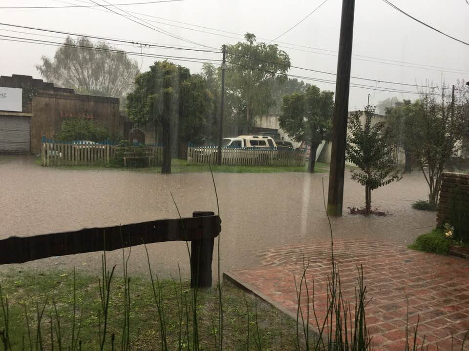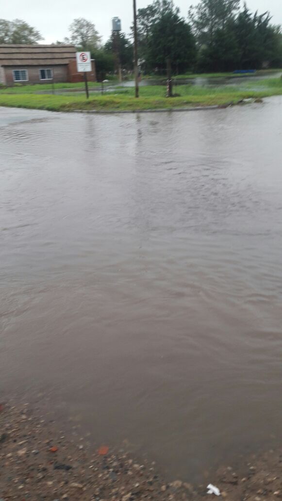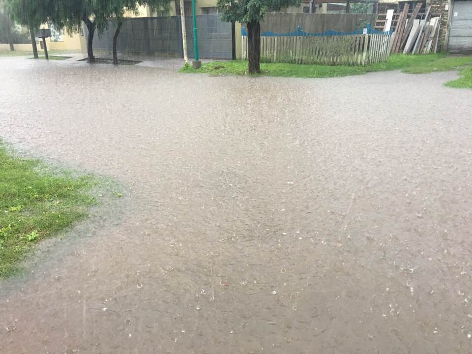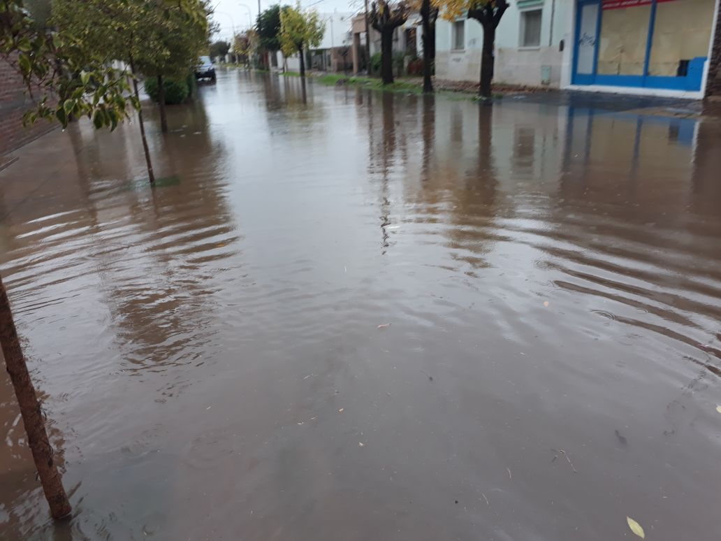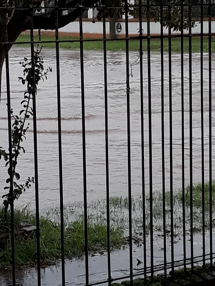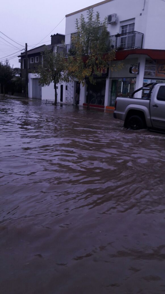 Impresionante la cantidad de agua que cayó en poco tiempo. Calles que nunca tenían problemas, totalmente cortadas. Se solicita que los vecinos que anden en vehículo pasen despacio por las calles, debido a que se mete el agua en las casas y negocios. Defensa Civil trabajando a destajo para ir solucionando algunos problemas. El agua ingresó en varias viviendas.