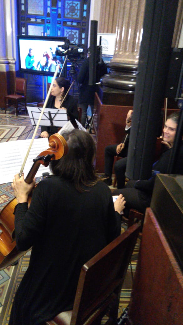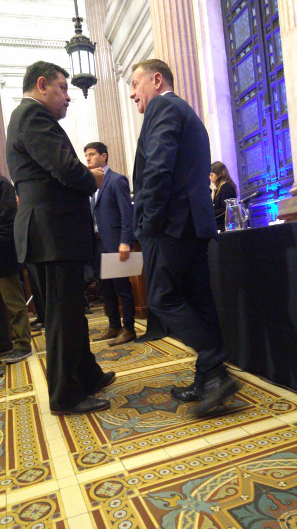 La entrega fue en este monumental salón de doble altura que forma parte del acceso ceremonial al Palacio del Congreso. Su gran vitral en la altura representa a la República Argentina en un fondo de campos cultivados que simboliza el progreso económico que aseguraba la unidad política nacional.