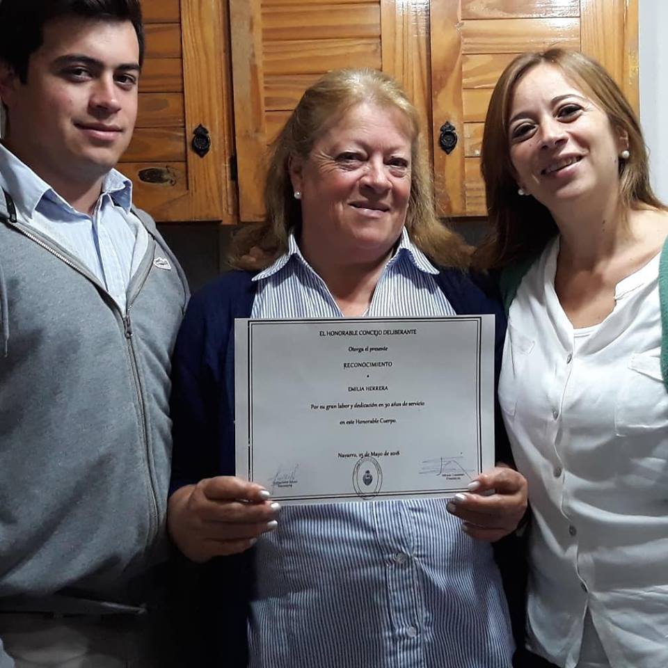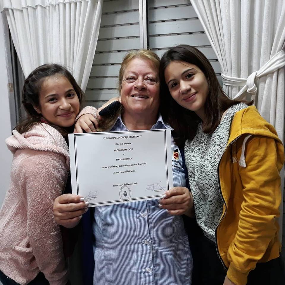 Anoche, antes de comenzar la sesión prevista, el Honorable Concejo Deliberante le otorgó a Emilia Herrera un reconocimiento, al haberse cumplido el pasado 25 de mayo, 30 años de abnegada labor y dedicación.