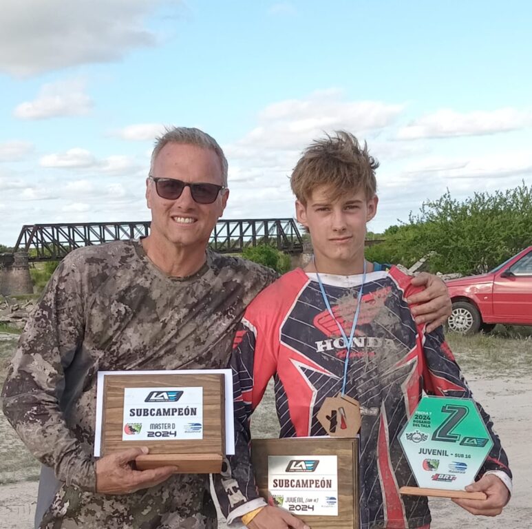 Allí como adelantáramos en la nota anterior, fuimos representados en esta ocasión por Félix y Fito Zuberbuhler. Félix luego de la carrera de ayer, finalizó el torneo siendo subcampeón en la categoría sub 16 a bordo de una Honda CRF 230. Fito fue subcampeón en la categoría Master D (Mayores de 50) a bordo de una Kawasaki KLR 300, en tanto que Benjamín no pudo asistir por ser parte de la delegación que participó de los Juegos Bonaerenses. En marzo de 2025 comienza un nuevo torneo y este trío promete estar nuevamente presente representando a nuestra ciudad. Estaremos informando.