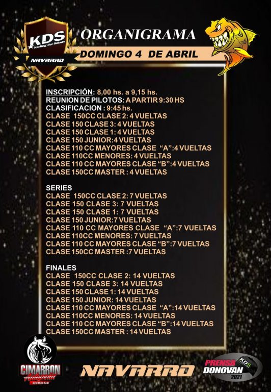 De 8 a 9,15 será la inscripción, a las 9,30 se realizará la reunión de pilotos y a las 9,45 comienza la clasificación a 4 vueltas con la 150 cc. clase 2. Posteriormente se largarán las series y finales.