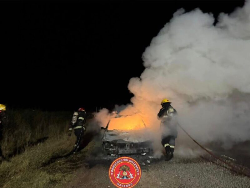 La salida de los Bomberos Voluntarios de Navarro de este martes a la 1 a.m. se debió al incendio de un vehículo en ruta 41 km. 207,2. No se registraron heridos. Colaboraron, Policía Comunal y Guardia Urbana Municipal.