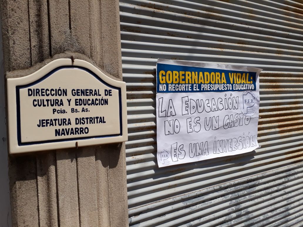 Pudimos charlar con Manuel Ruocco, Representante Gremial de la F.E.B. en Navarro, quien en concordancia con el texto de los carteles, marcó su total desacuerdo con los despidos y las fusiones de cursos entre otras cosas. En cuanto a el respaldo a la movilización dijo que algunos docentes hoy no estuvieron por no querer abandonar sus aulas y otros, por que hay quienes se lo impiden. De todos modos dijo estar satisfecho.
