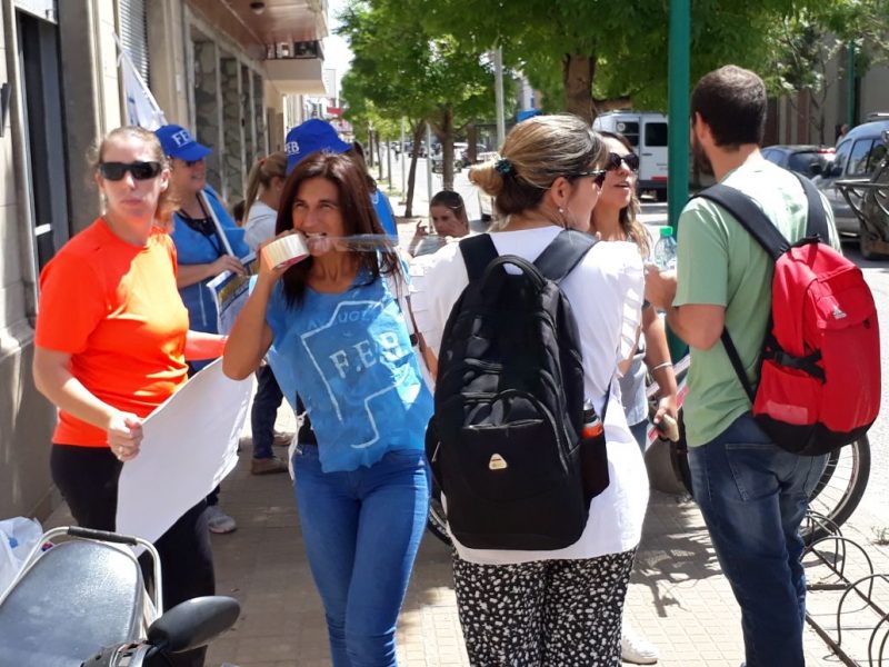 Bajo el lema: «Los docentes decimos basta», integrantes de la F.E.B. se concentraron hoy a las 12, frente a la Jefatura Distrital. También pudimos ver en la marcha a algún representante de SU.TE.BA