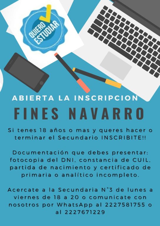 Luego de hacerlo comunicate por este medio o por whatsapp al 2227671229 o al 2227581755. También podes acercarte de lunes a viernes a la EES N°3 de 18 a 20.
