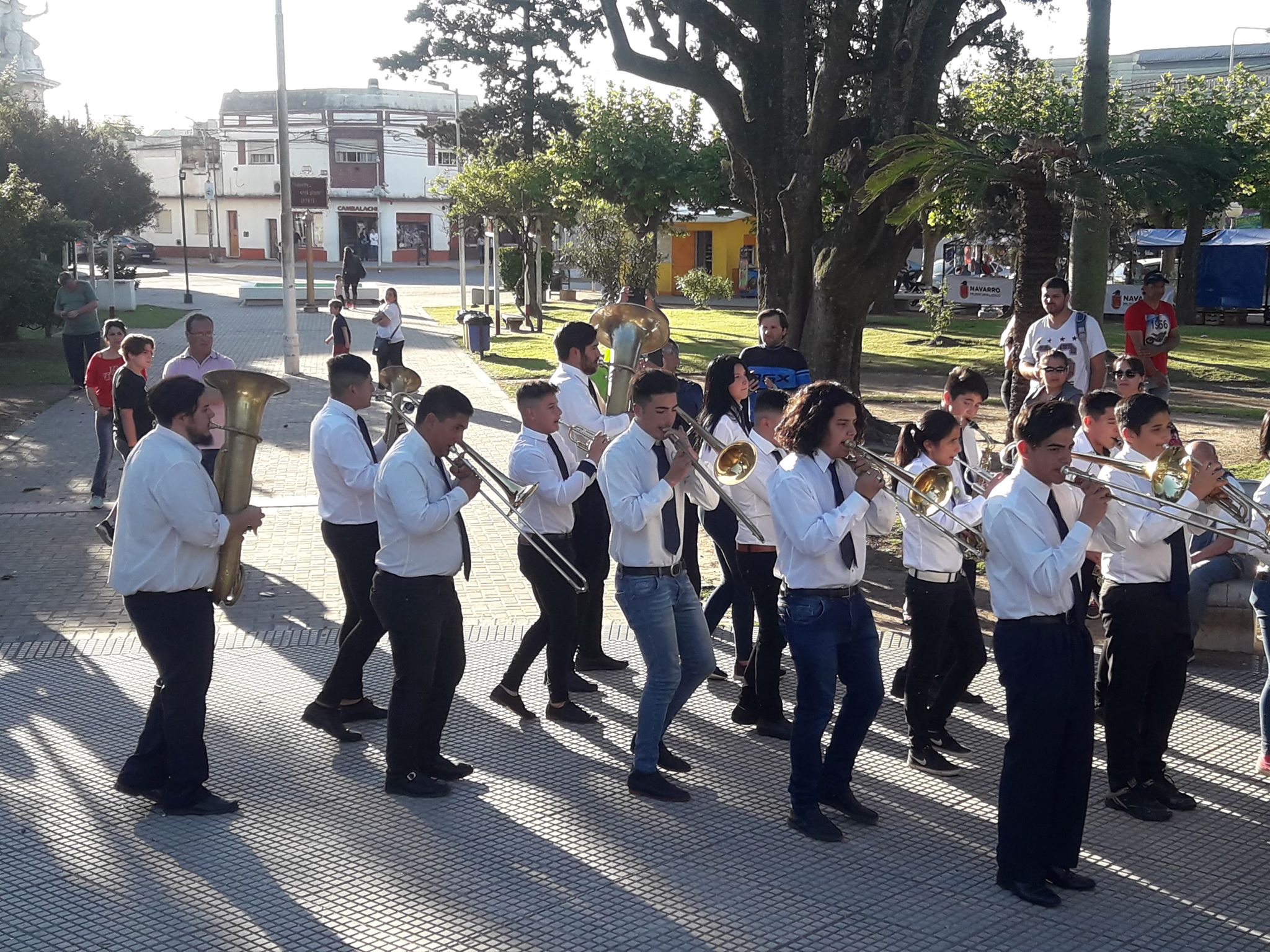 Se desarrolló hoy, tal como estaba previsto el ya anunciado encuentro de bandas de música en la rotonda de la Plaza San Lorenzo con motivo de los festejos por los 44 años de la banda local.
