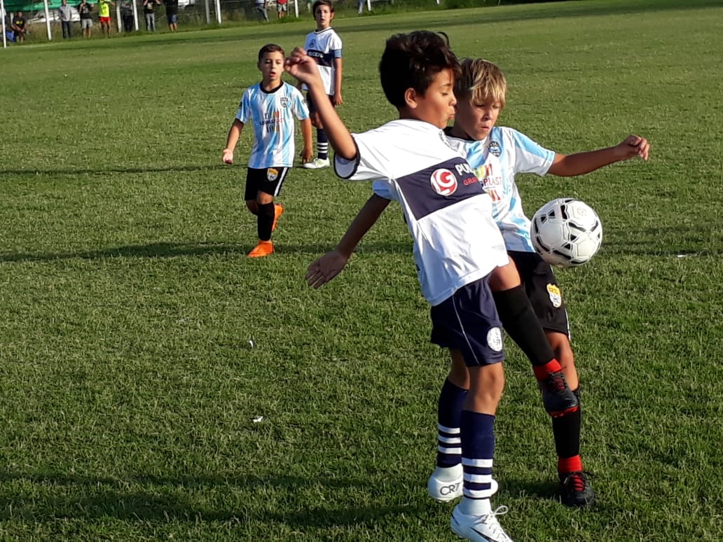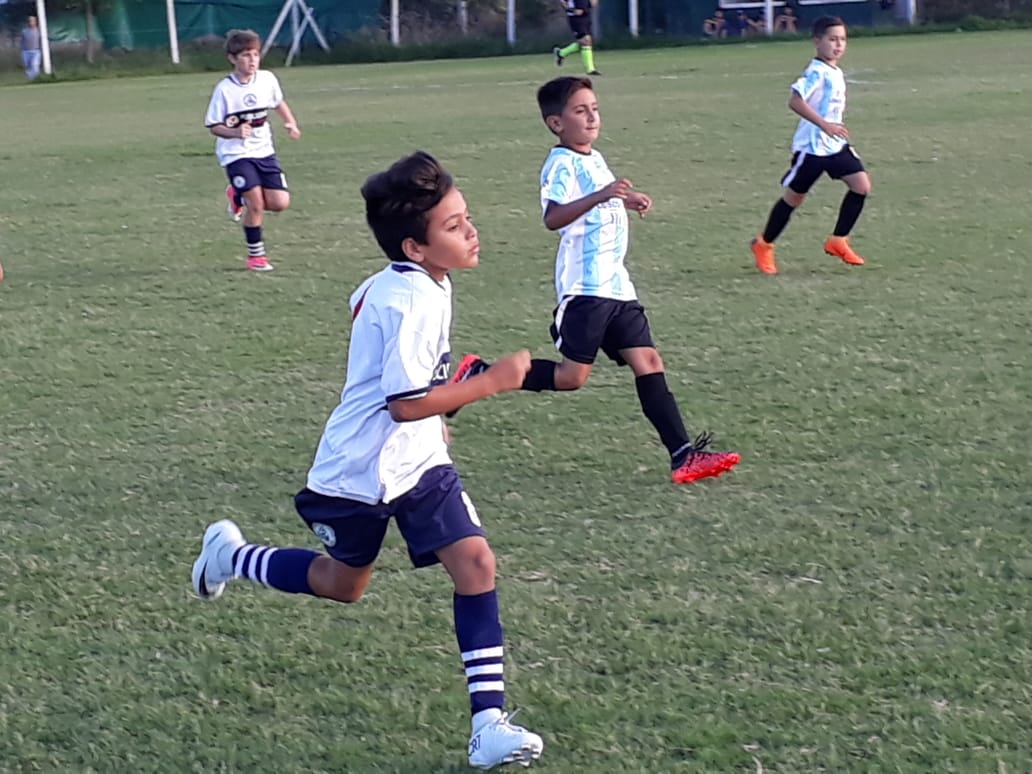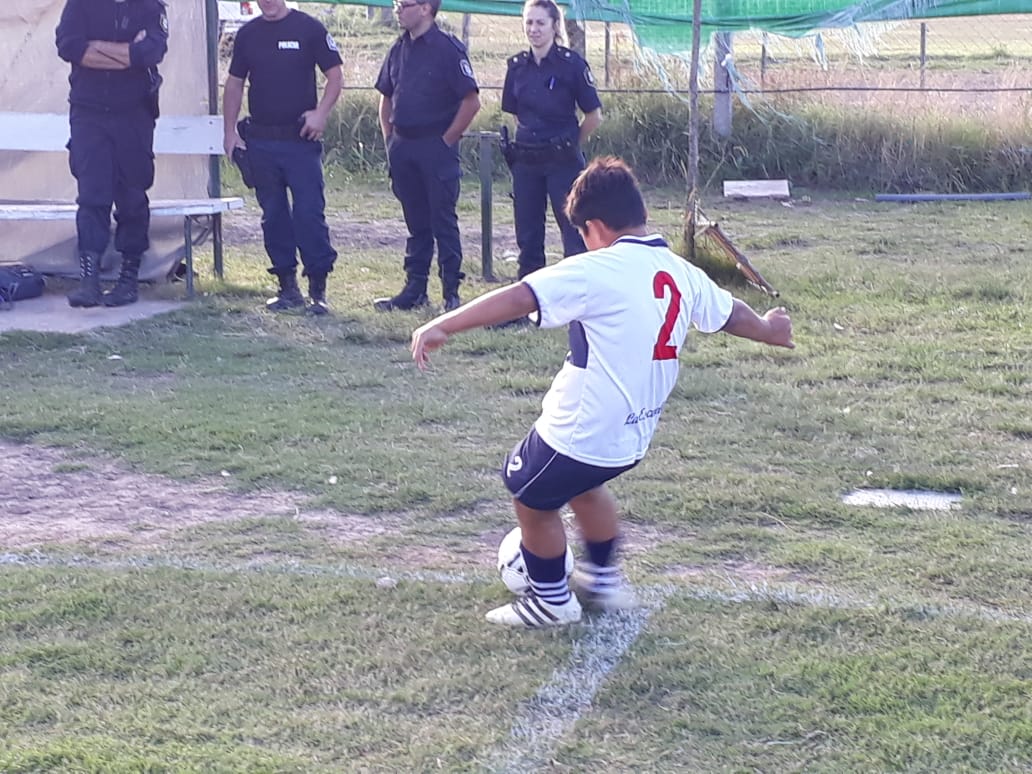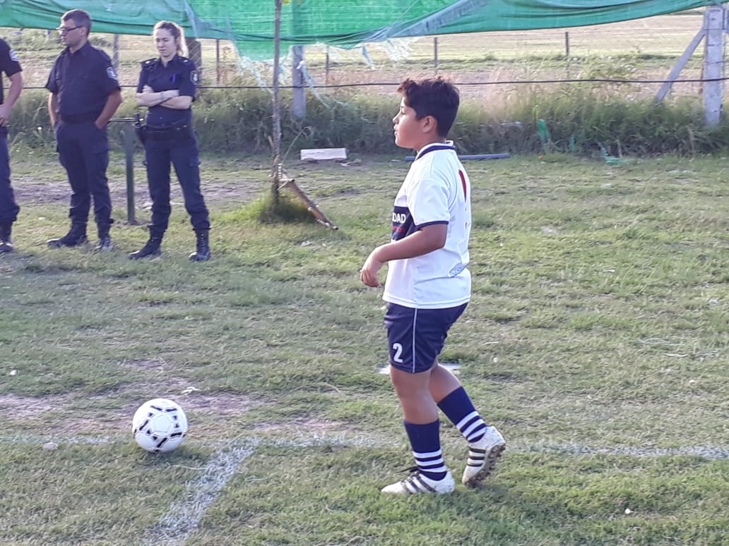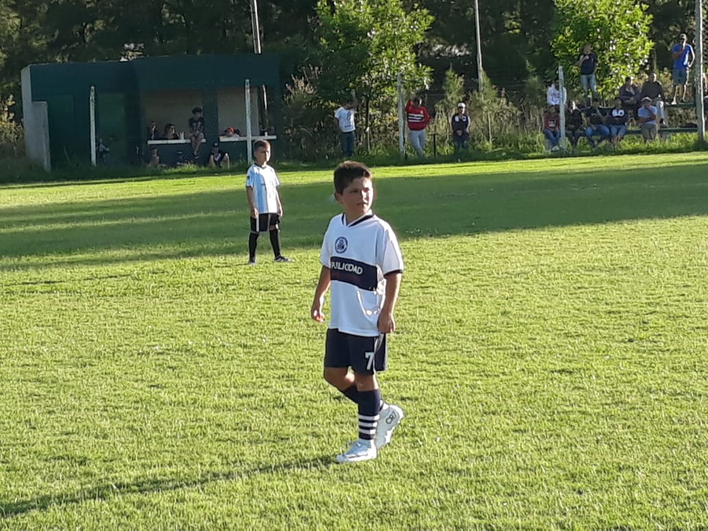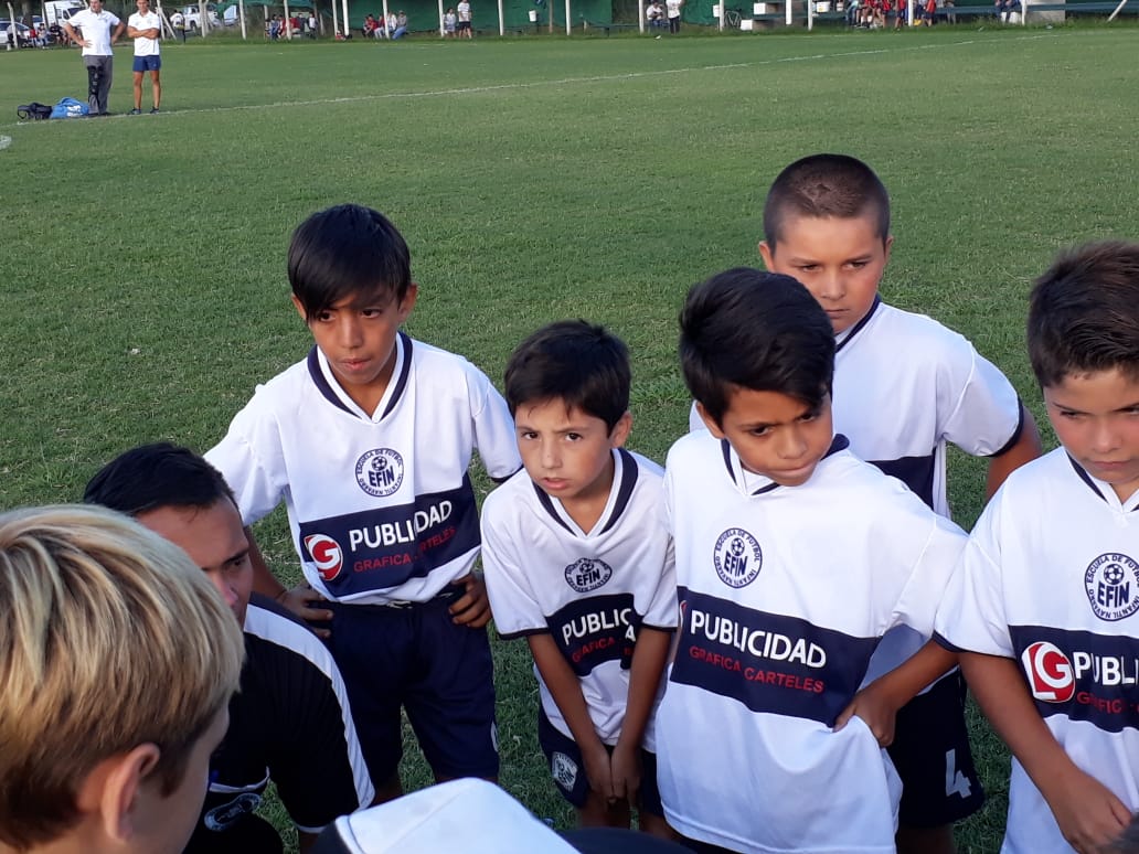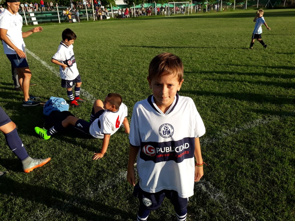 En lo que al partido respecta, comenzó ganando E.F.I.L. 1 a 0 y de inmediato, empató «La Escuelita» a través de Julián Barrado que ya pinta bien desde chiquito. Buena tarea defensiva de E.F.I.N., incluyendo a su arquerito Alex Bernhard, que tapó un pelotón con la pierna estirada. En el medio estaba el partido y estuvo muy parejo y adelante ninguno inquietaba lo suficiente salvo con algún tiro desde afuera.