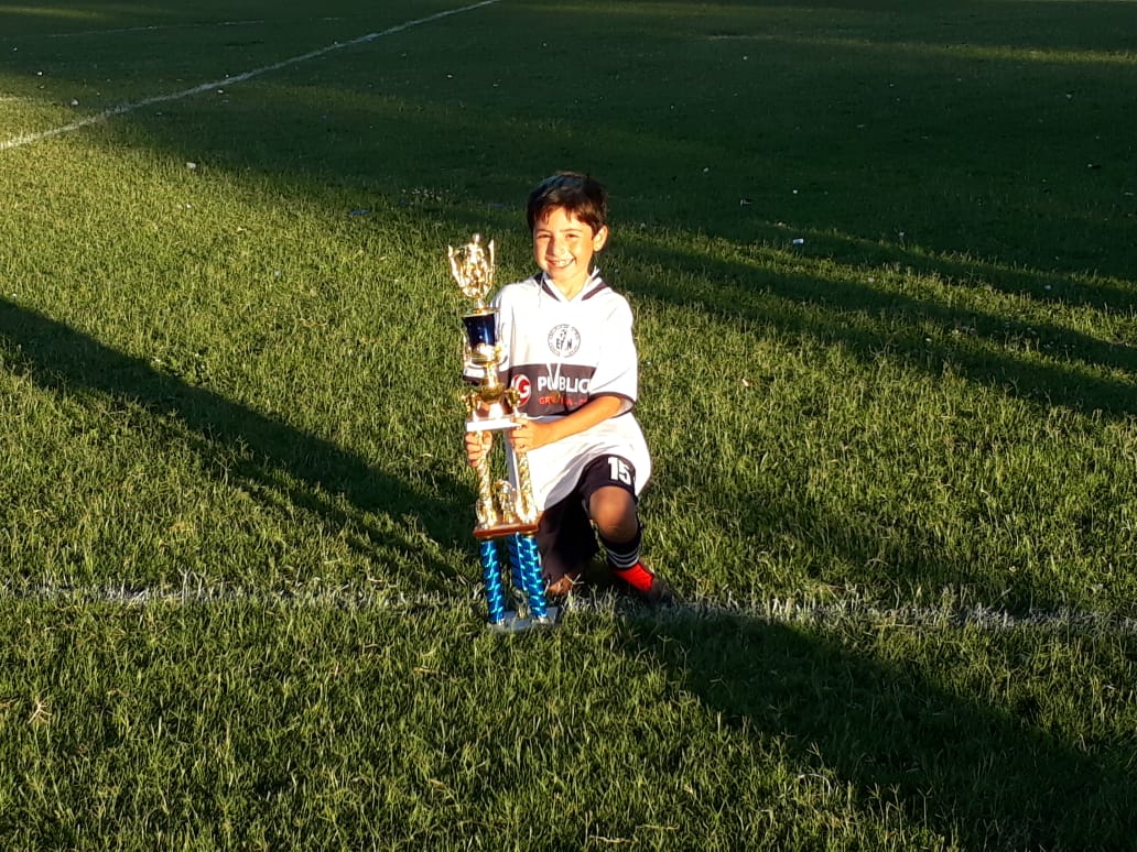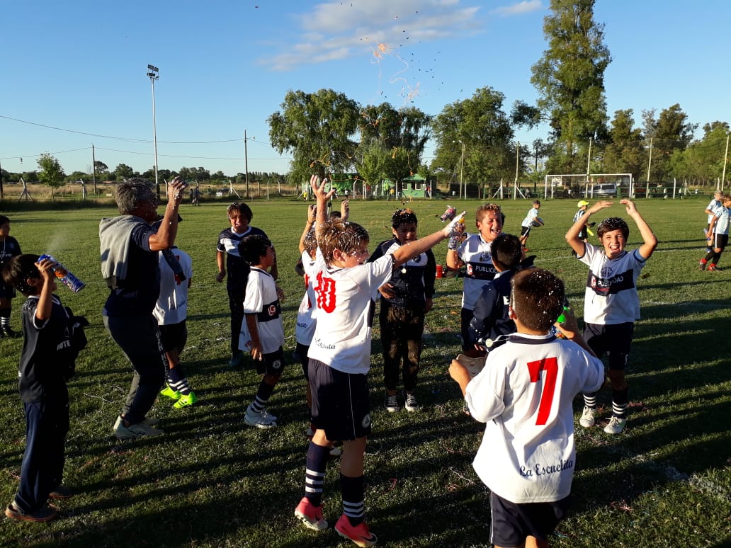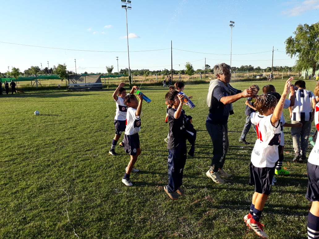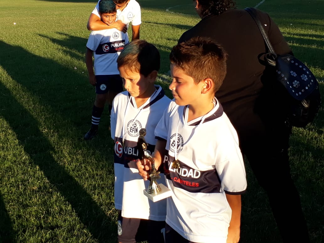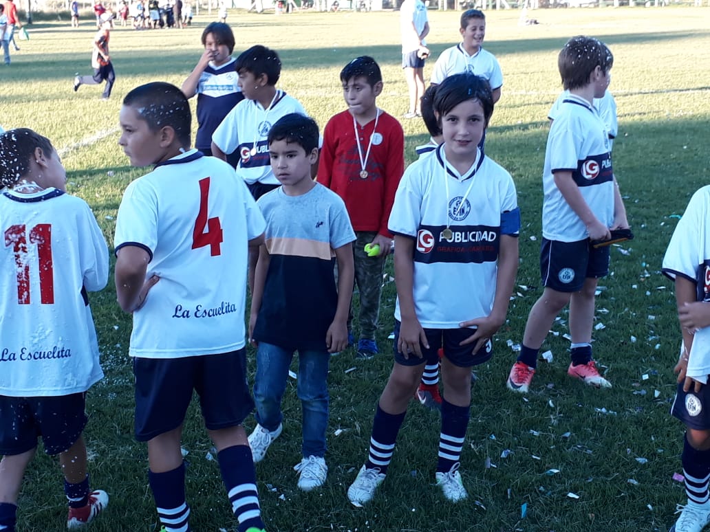 Los chicos en el final del partido, en un principio estaban como sorprendidos y no reaccionaban, hasta que de a poco el festejo se apoderó de todos ellos. Valentino Sastre recibió el premio al goleador del torneo.