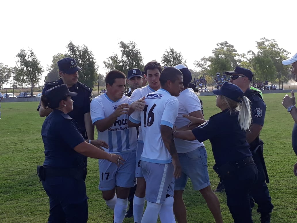 En el comienzo nomás, Morra se equivocó al salir jugando, se la robaron y 1 a o para Club Las Heras. Minutos después, sobre el sector izquierdo del ataque celeste,una descalificadora falta de un defensor de Club Las Heras sacó de la cancha a Facundo Cuello por un buen rato en jugada de expulsión. El árbitro sólo mostró la amarilla y allí empezó a cambiar la historia. Los jugadores de Dorrego reclamaron airosamente pidiendo la expulsión, hubo empujones, gritos y dos expulsados por lado. Por Dorrego, Leandro Carrizo y su técnico Fabricio Sánchez. El técnico herense también fue expulsado. Iban pocos minutos, pero ya no había manera de que el partido fuese el mismo. Nerviosismo en ambos equipos, juego brusco y un Dorrego que al no encontrar la serenidad, no podía hilvanar jugadas de peligro, aunque metió dos tiros en el travesaño en jugadas aisladas que podrían haber cambiado la historia.
