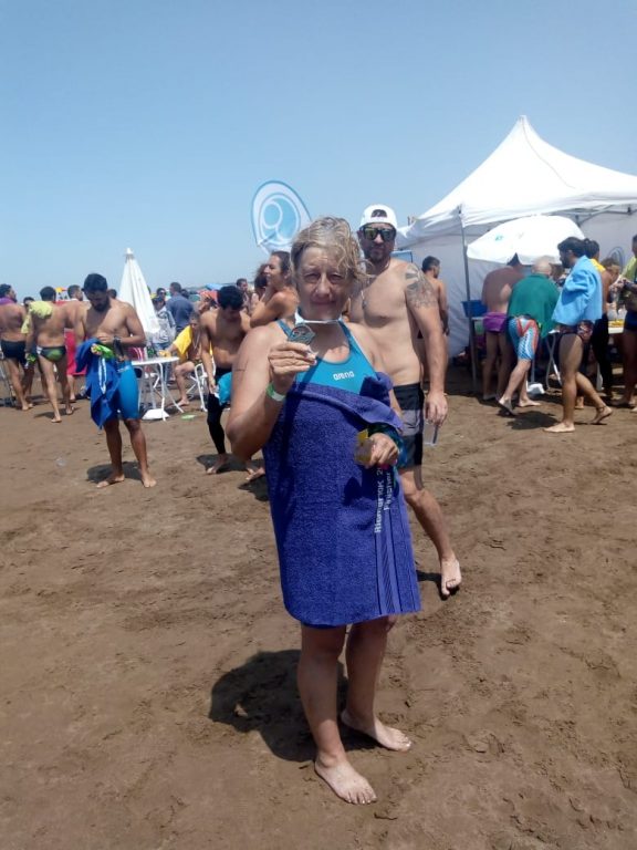 En una carrera durísima, con un oleaje muy fuerte y varios abandonos, Gladys Fernández no sólo completó la prueba sino que finalizó en el primer lugar en su categoría. Felicitaciones.