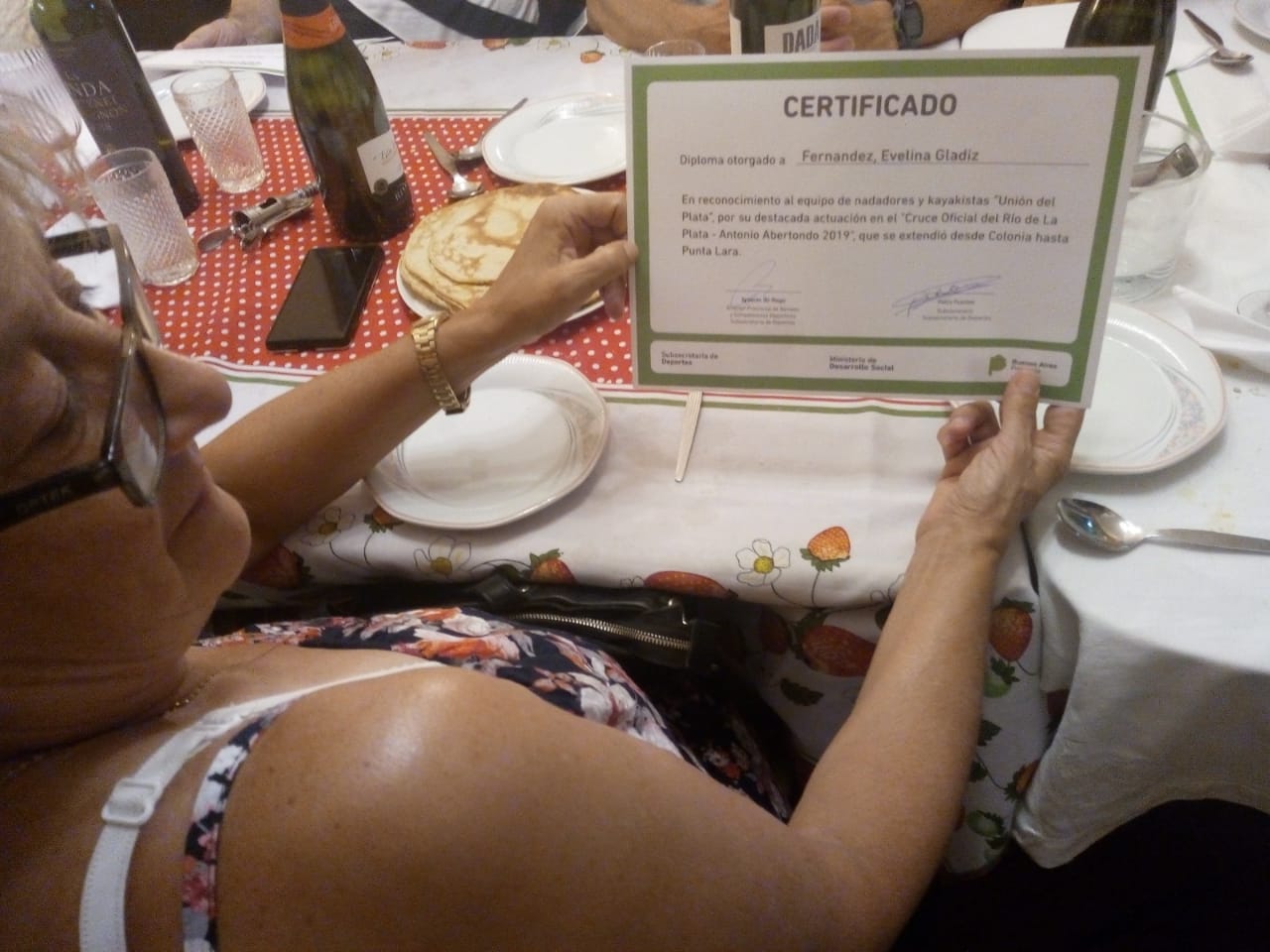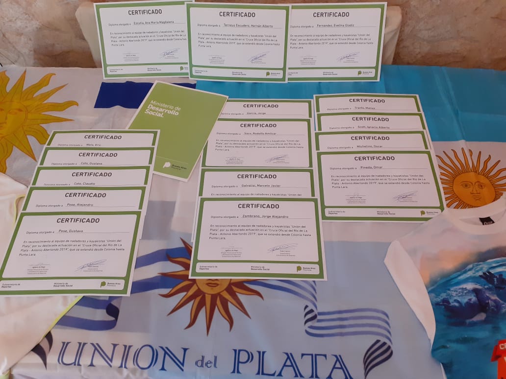 Otro reconocimiento para la nadadora local. Fue anoche, en una cena en la que la Subsecretaría de Deportes de la Provincia de Buenos Aires y el Ministerio de Desarrollo Social, reconocieron al equipo de nadadores y kayakistas Unión del Plata por el «Cruce Antonio Albertondo 2019» del Río de La Plata, que se extendió desde Colonia Uruguay hasta Punta Lara. Un mimo más para Gladys, luego de los otros reconocimientos realizados con mucha antelación por otros organismos y entidades.
