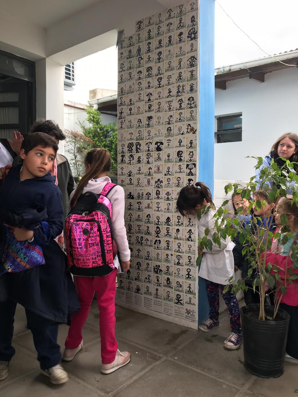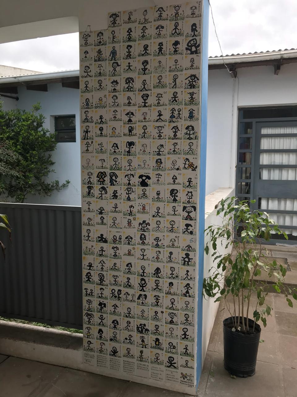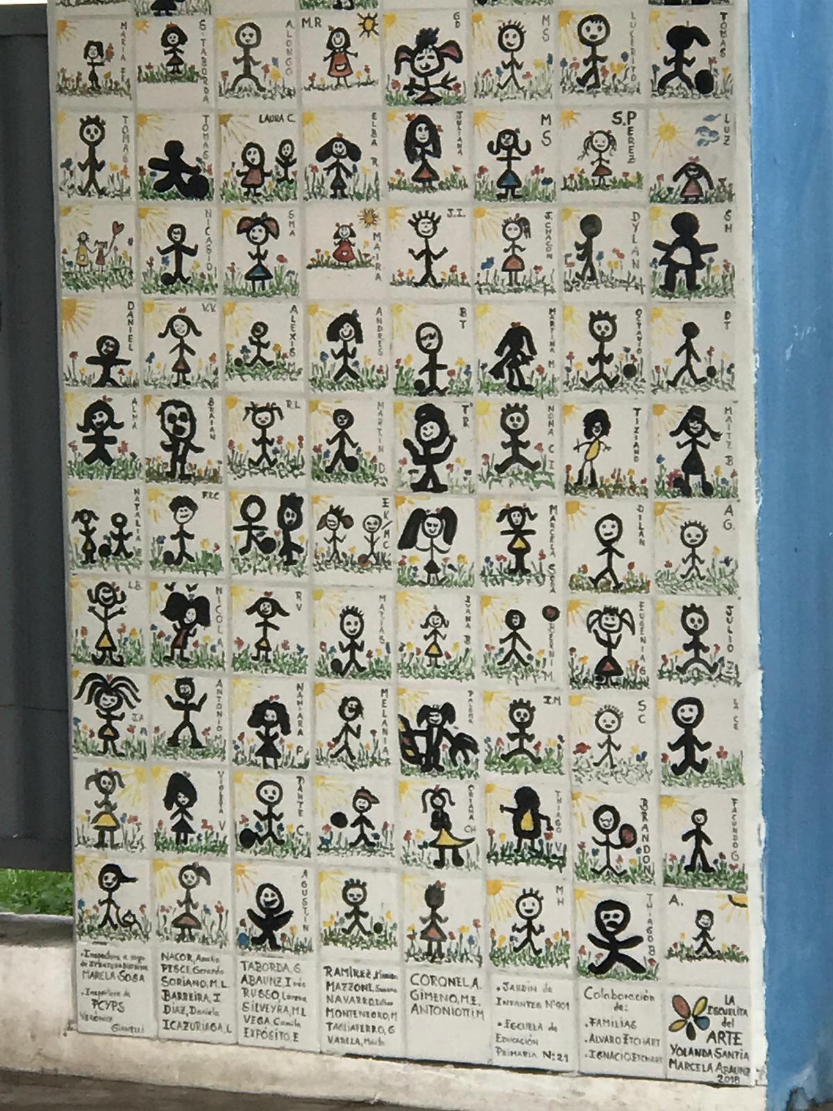 El mural, que mide 80 cms por 2,40 mts está formado por pequeños tocetos de 10 x 10 con un dibujo y el nombre de cada chico. De este modo, cuando sean adultos, podrán compartir su recuerdo del paso por el C.E.C.