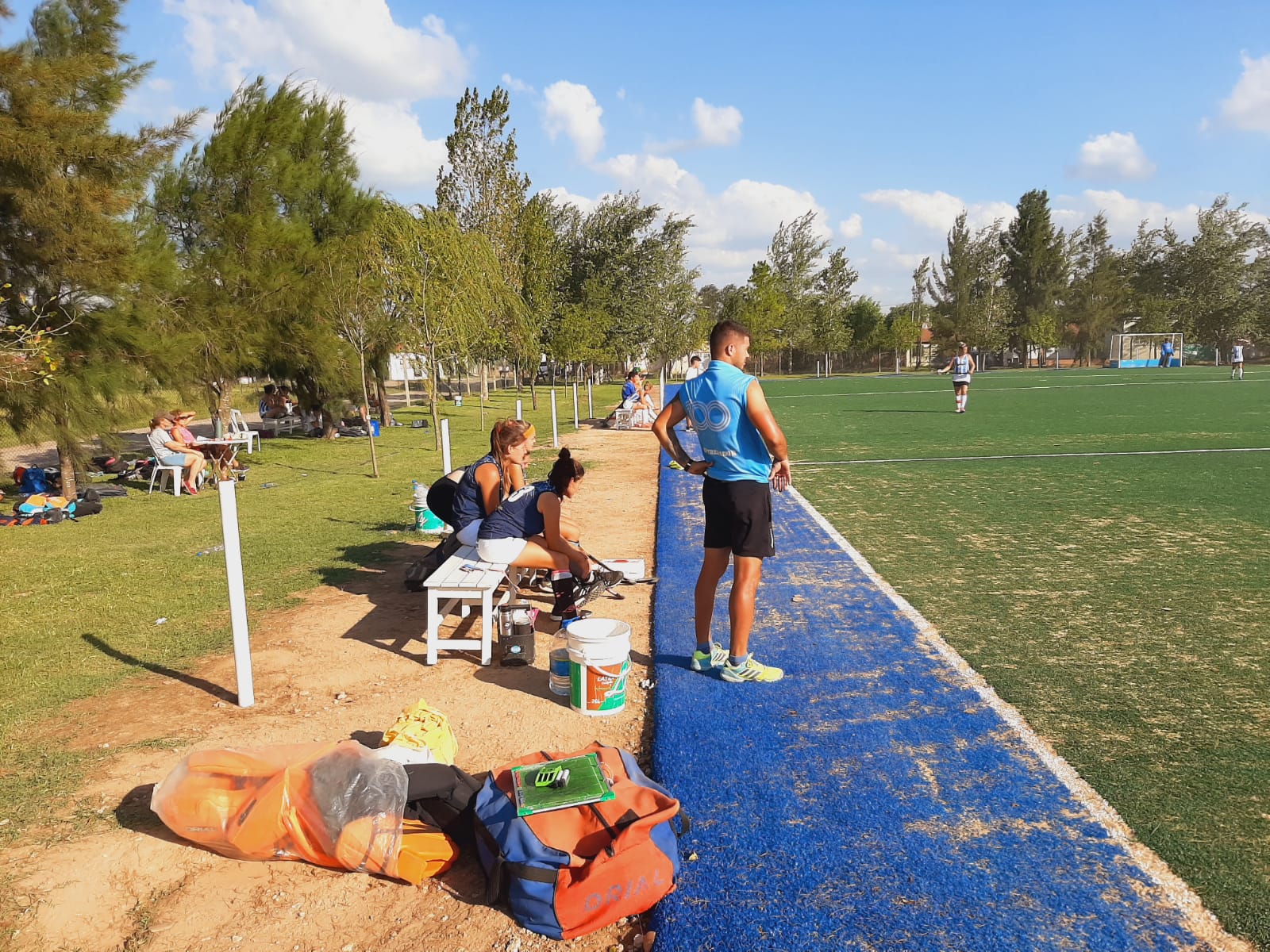 Aunque aún no se está jugando el torneo oficial, fue muy lindo ver a las chicas de Dorrego, oficiando de locales en el nuevo y anhelado sintético del predio del club. A las 11 de la mañana dió comienzo la programación en la que las chicas celestes enfrentaron a su similar de Atlético de Roque Pérez.