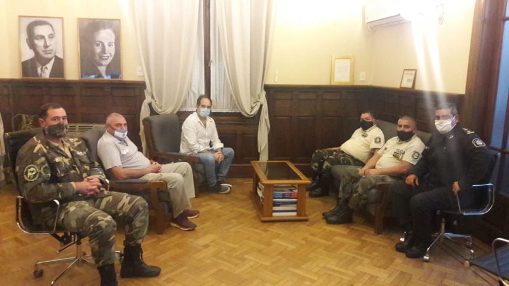 El comisario mayor Jorge Ferrari, nuevo jefe de Coordinación Rural de los CPR, se presentó el martes 19 en el Palacio Municipal, para mantener una charla con las autoridades, siendo recibido por el intendente Santiago Maggiotti y el Director de Seguridad, Javier Recaite. Estuvieron en dicho encuentro, el comisario mayor Raúl Coronel, coordinador zonal del CPR-Chivilcoy, el oficial inspector Carlos Mariano Scarcelli, jefe del CPR Navarro, y el comisario Miguel Chulia, jefe de la Policía Comunal.