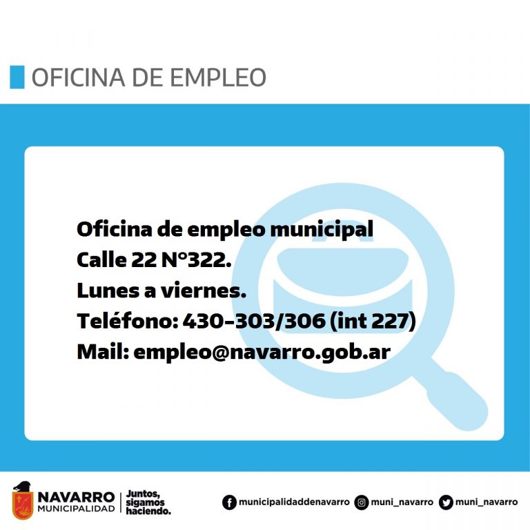 La Municipalidad de Navarro, a través de la Dirección de Promoción Social y Empleo, invita a quienes hayan presentado sus datos o Curriculum Vitae, con anterioridad, para actualizar los mismos. Asimismo, se están realizando entrevistas y confección de CV, recibiendo ofertas laborales y/o consultas relacionadas con el empleo y sus normativas.