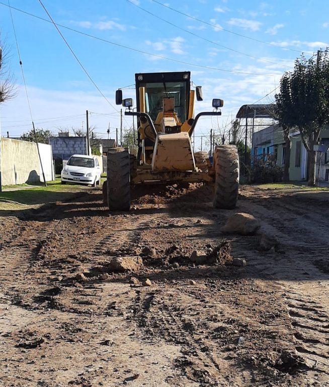 Son tareas de nivelación en caminos rurales como Ruta 44 a Villa Moll y en zona urbana donde se realizan reparaciones en diferentes calles, cordones, etc.