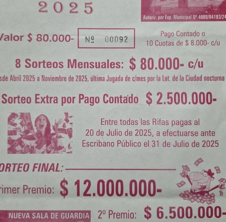 Las rifas que fueron canceladas al 20 de julio, participarán del PREMIO PAGO CONTADO que se realizará ante Escribano Público en la sede del Hospital San Antonio de Padua, el día 31 de julio a las 11.