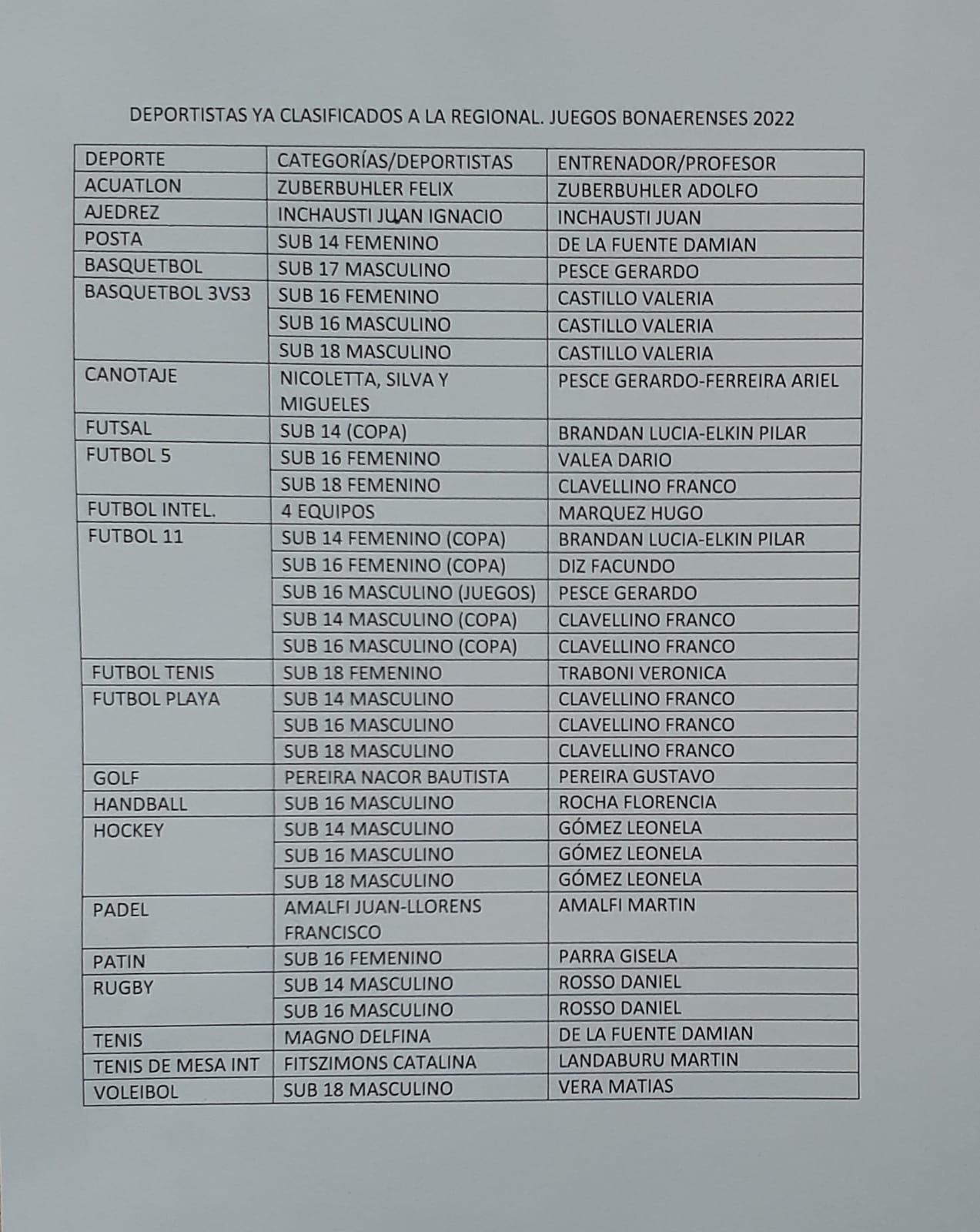 Informe de la Secretaría de Deportes. Los clasificados para los Juegos Bonaerenses