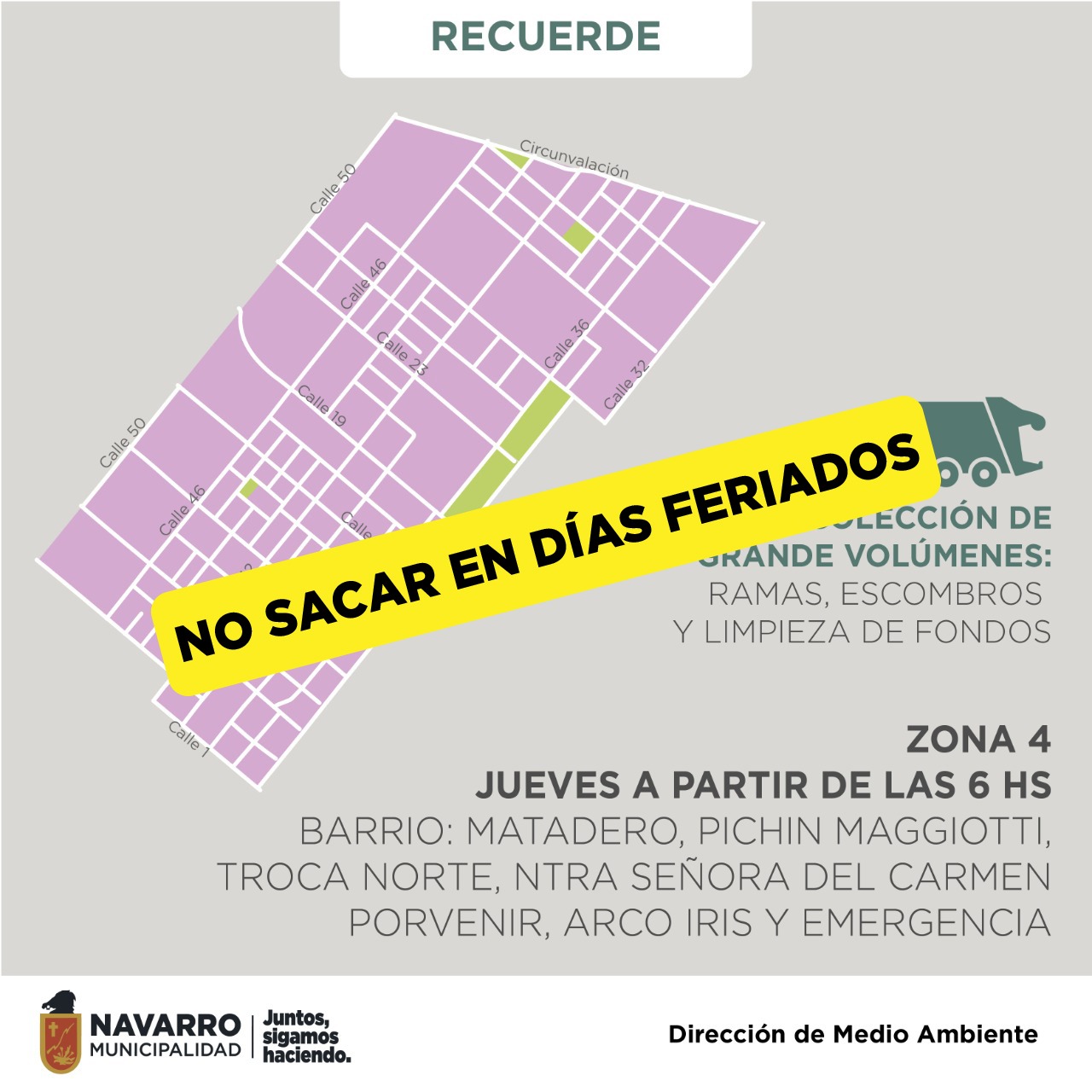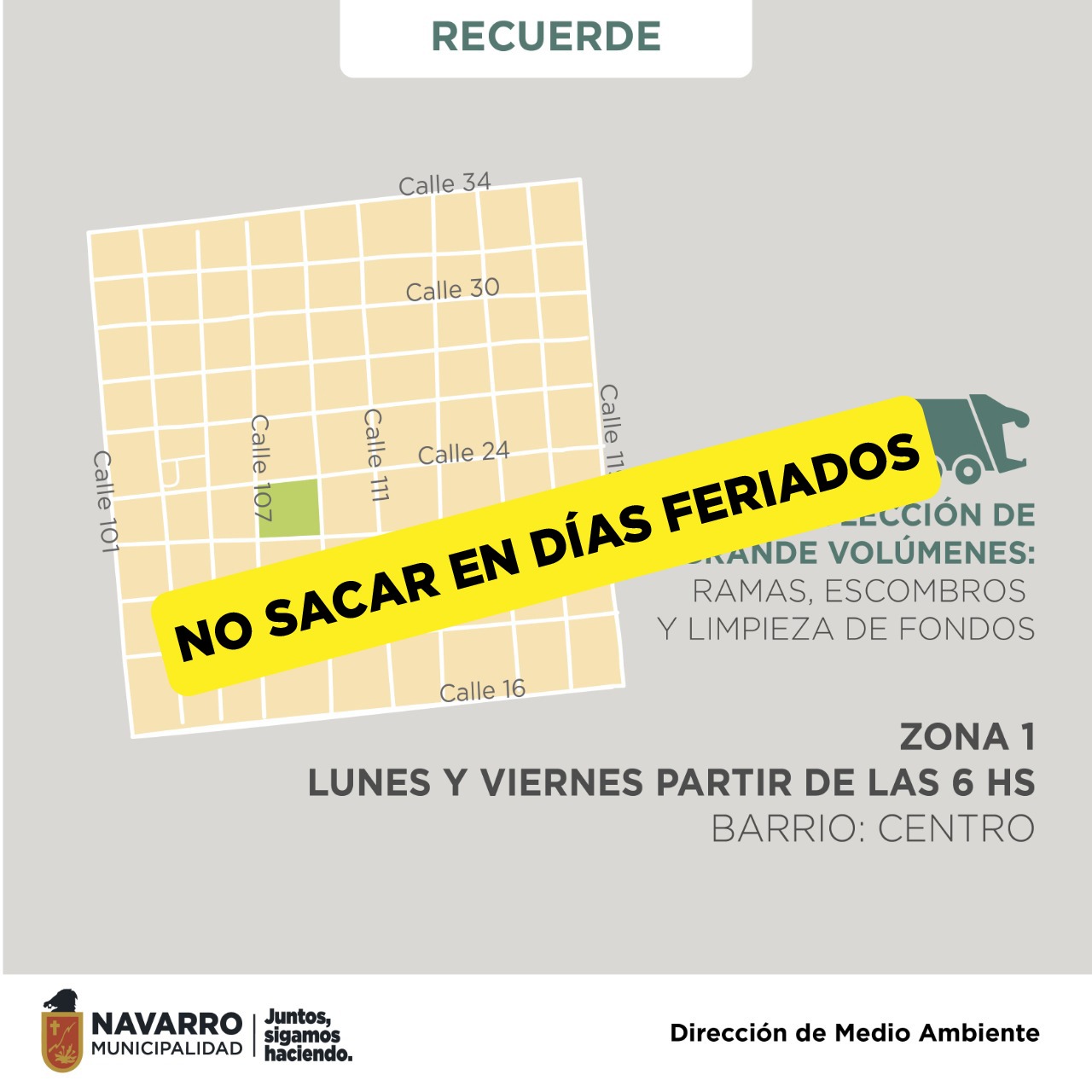 La Municipalidad de Navarro informa que, jueves 9 y viernes 10 del cte. no habrá recolección de grandes volúmenes.