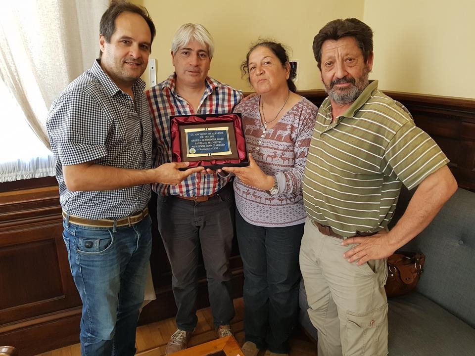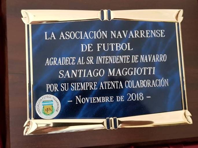 Hoy por la mañana el intendente Santiago Maggiotti recibió a miembros de la Comisión de Fútbol de la Liga Navarrense, a quienes les hizo entrega de un subsidio que será utilizado para gastos que ocasiona el campeonato que se desarrolla en el Polideportivo Municipal, los sábados por la tarde, y a su vez, recibió una distinción por parte de esta institución, en agradecimiento a la colaboración que reciben constantemente de este Municipio.
