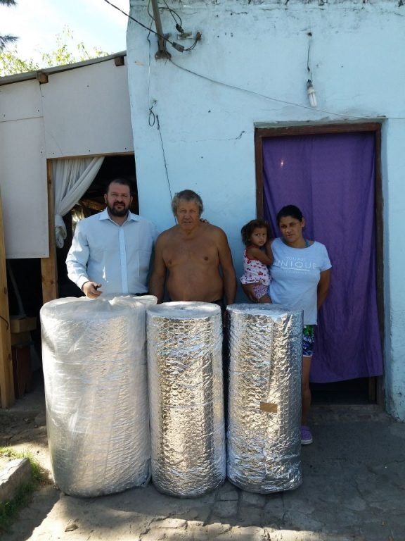 A través de gestiones realizadas por la Municipalidad de Navarro, la empresa INTISOL realizó una donación de 60 m2 de aislante térmico para techos.