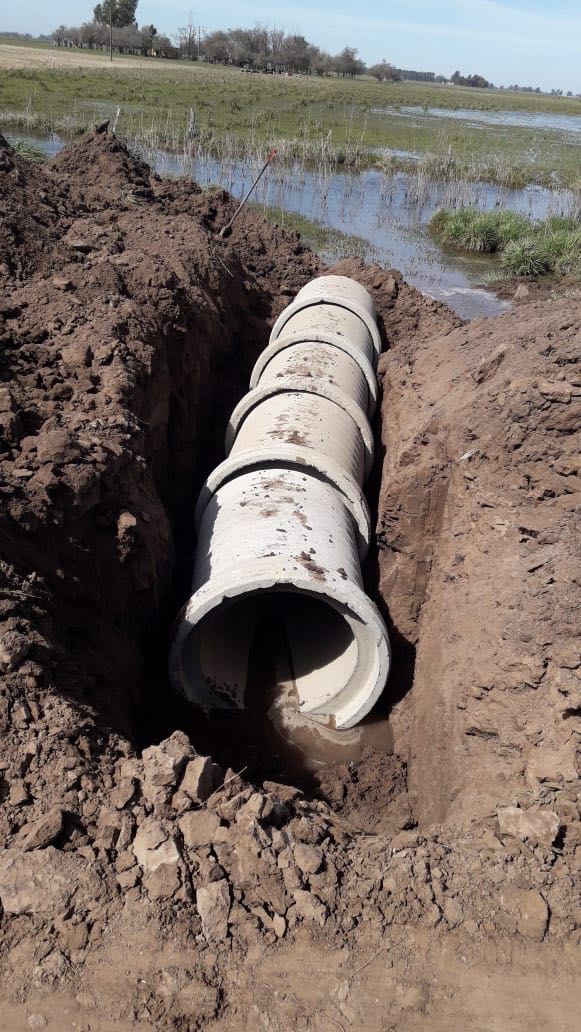 Reparación y cambio de tubos de alcantarillas en zona rural, ruta 40 y Escuela N°14.
