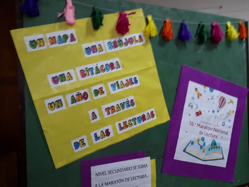 En esta oportunidad bajo el lema: «UN MAPA, UNA BRÚJULA, UNA BITÁCORA: UN AÑO DE VIAJES A TRAVÉS DE LAS LECTURAS», se hizo un recorrido por aquellas actividades de lectura y escritura que se desarrollaron en Prácticas del Lenguaje y Literatura en Secundaria Básica y Superior, con las profesoras Mariela, Verónica y Sofía, junto a la bibliotecaria. Fue una jornada de disfrute literario.
