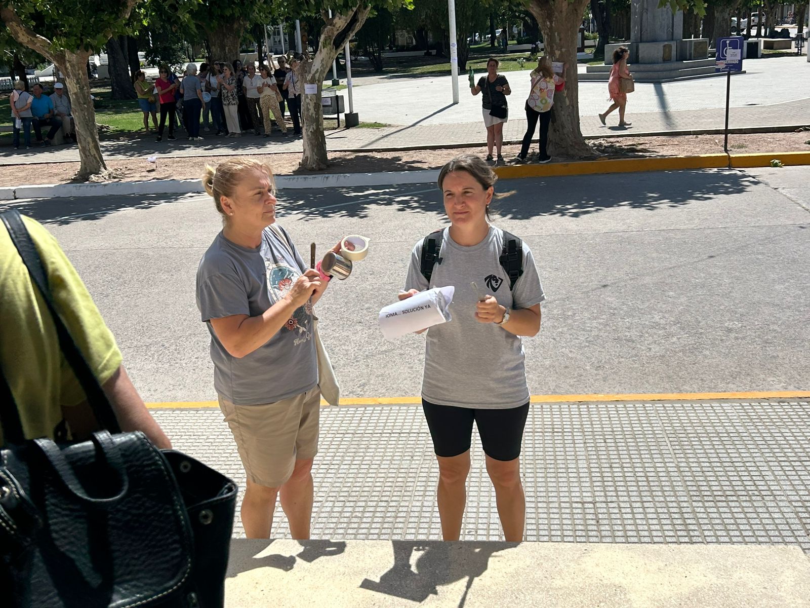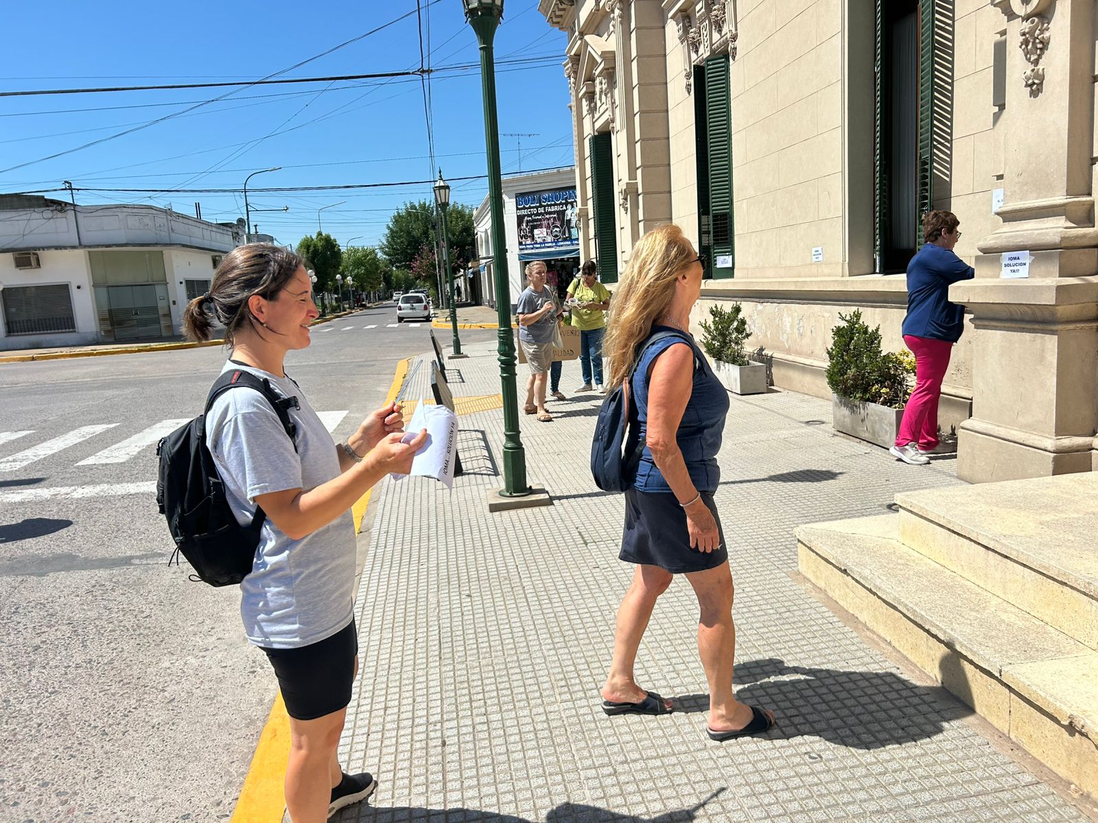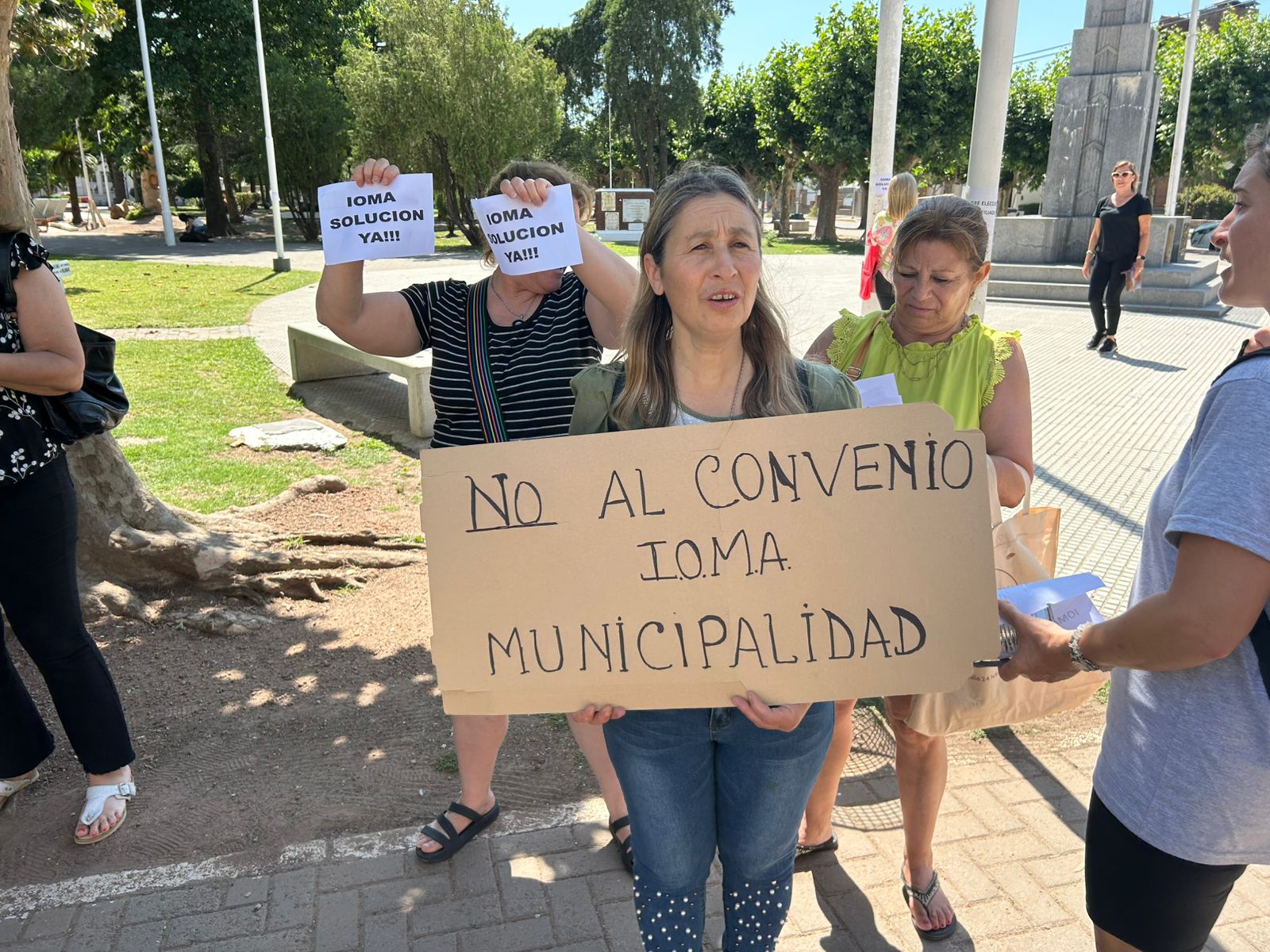 Continúan las acciones de los afiliados autoconvocados del IOMA. Esta mañana a las 10 se agruparon frente al Municipio, pegaron volantes en su fachada y presentaron en mesa de entradas una nota en la que solicitan una reunión con el Intendente. Esta vez la cantidad de asistentes fue mucho menor, pero los presentes señalaron que por cuestiones de trabajo no pueden sumarse más y que continuarán en la lucha hasta que llegue la solución que pregonan.