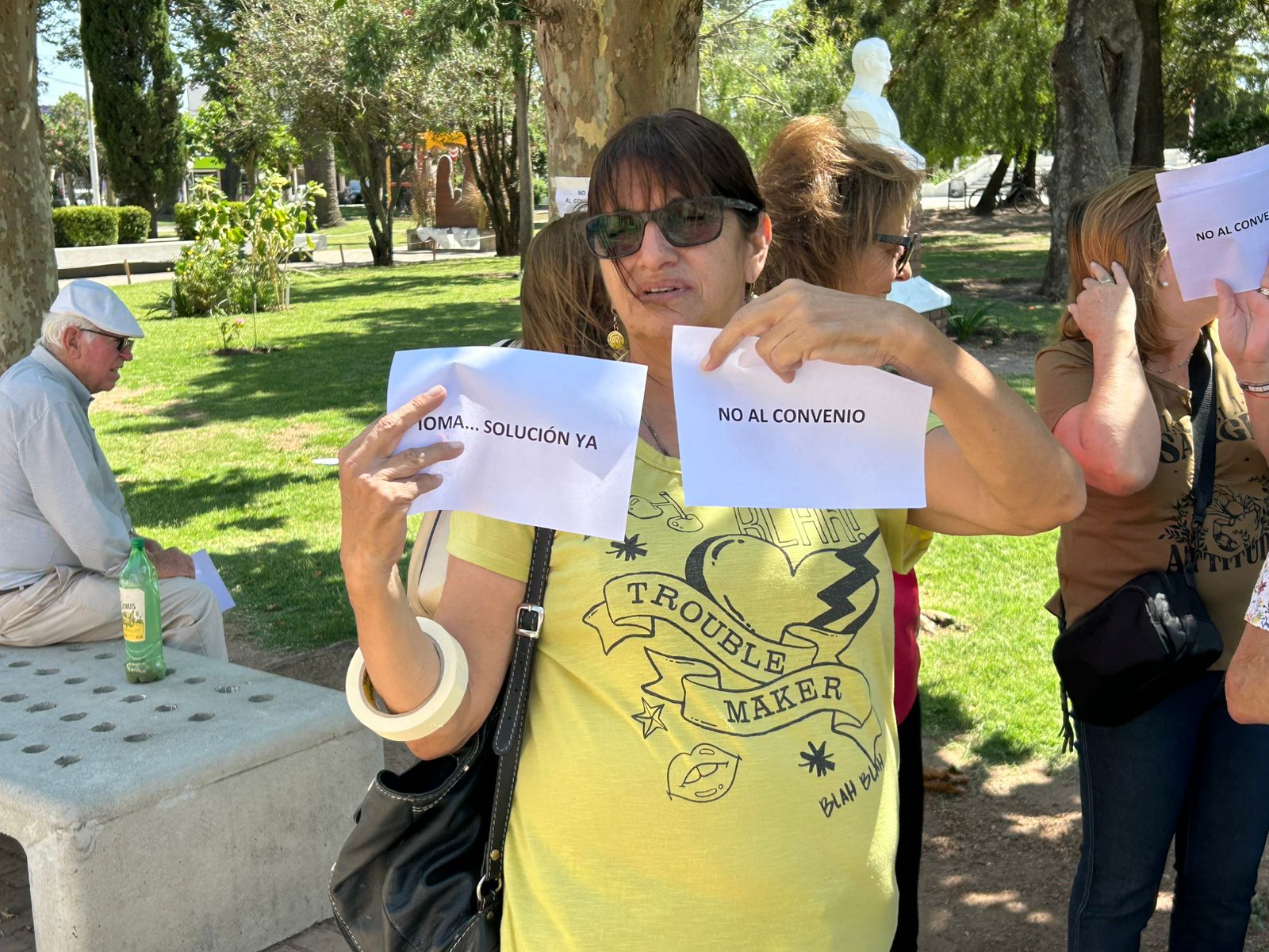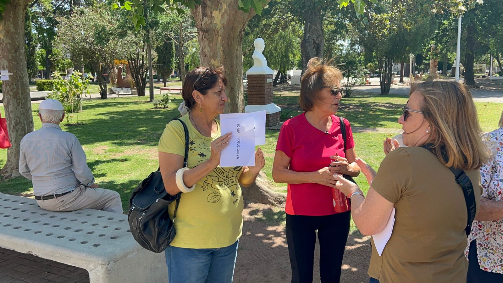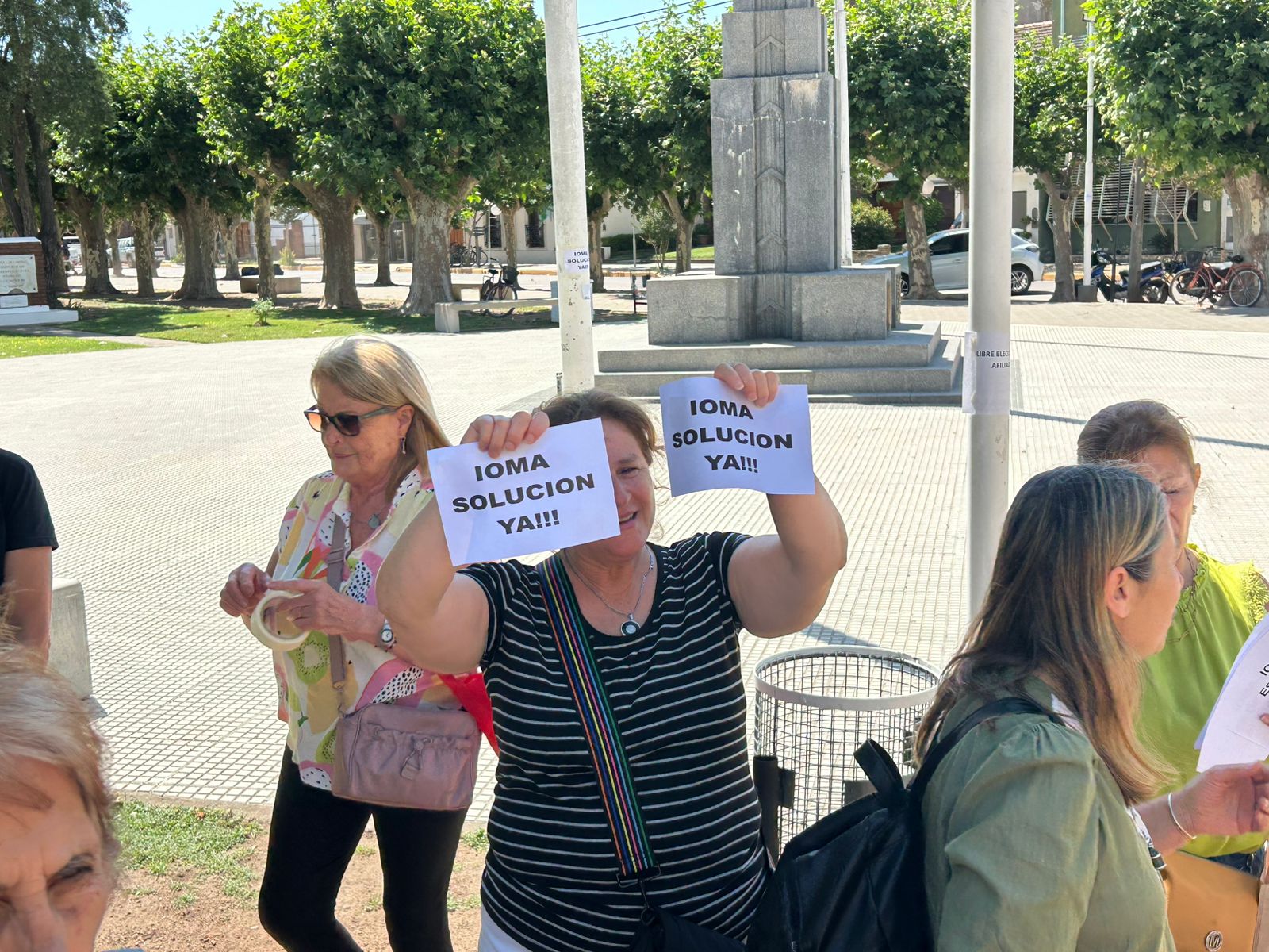 Continúan las acciones de los afiliados autoconvocados del IOMA. Esta mañana a las 10 se agruparon frente al Municipio, pegaron volantes en su fachada y presentaron en mesa de entradas una nota en la que solicitan una reunión con el Intendente. Esta vez la cantidad de asistentes fue mucho menor, pero los presentes señalaron que por cuestiones de trabajo no pueden sumarse más y que continuarán en la lucha hasta que llegue la solución que pregonan.