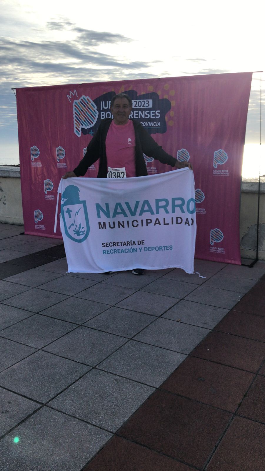 Omar Chaar, presente en los 10k. Esta disciplina surgió el año pasado y nuevamente el experimentado atleta navarrense se hizo presente en la categoría adultos. Fue acompañado por la profesora Sabrina Mariescurrena.
