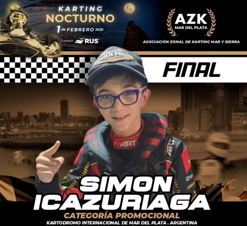 Este sábado se llevó a cabo la primera fecha del Campeonato Nocturno AZK sobre asfalto en el Kartódromo Internacional de Mar del Plata. Navarro estuvo representado en categoría Promocional por Simón Icazuriaga, quien debutaba en el asfalto. El joven piloto de nuestra ciudad tuvo una gran actuación, imponiéndose en la pre final y en la final.