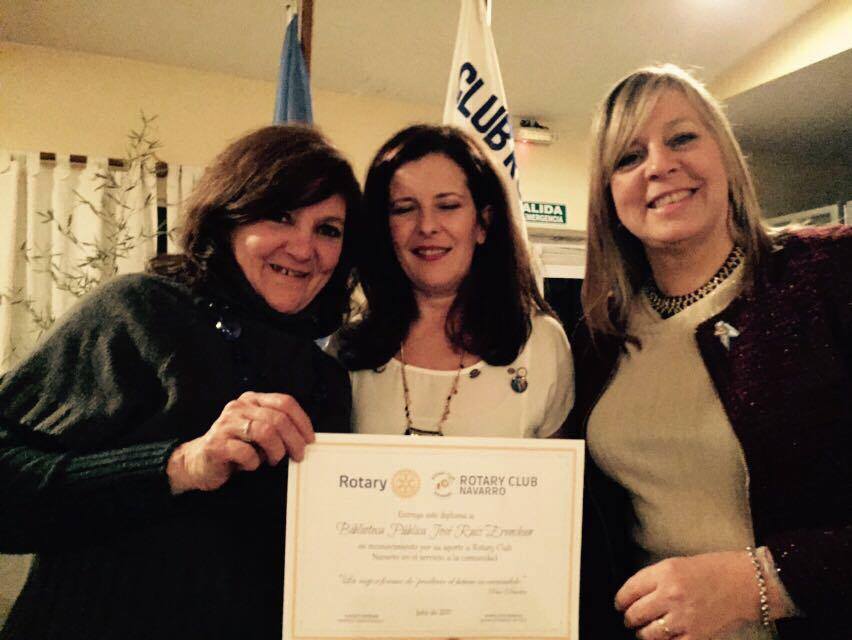 La Comisión Directiva Biblioteca J.R.de Erenchun agradece el presente que nos entregara el Rotary Club Navarro, por ser el lugar de reuniones semanales. Dicha entrega se llevó a cabo en la ceremonia de CAMBIO DE AUTORIDADES, el viernes 7 de Julio. A descansar, Lizzie Kiernan, presidente período 2016/2017. Bienvenida,María José Ramajo, Presidente período 2017/2018 y quienes la han de acompañar.- Javier Costa Secretario – Marcela Dimitri Presidente.-