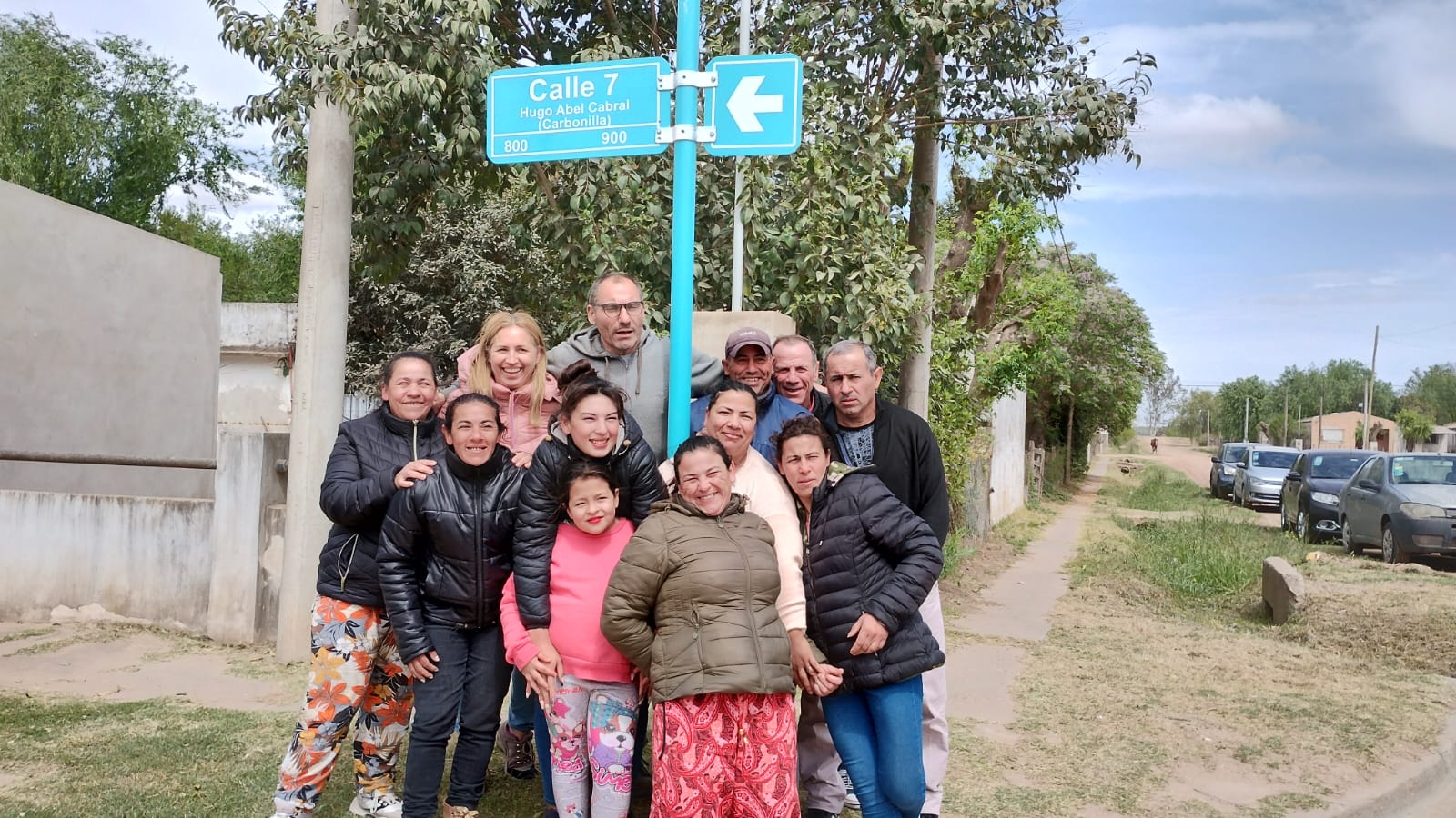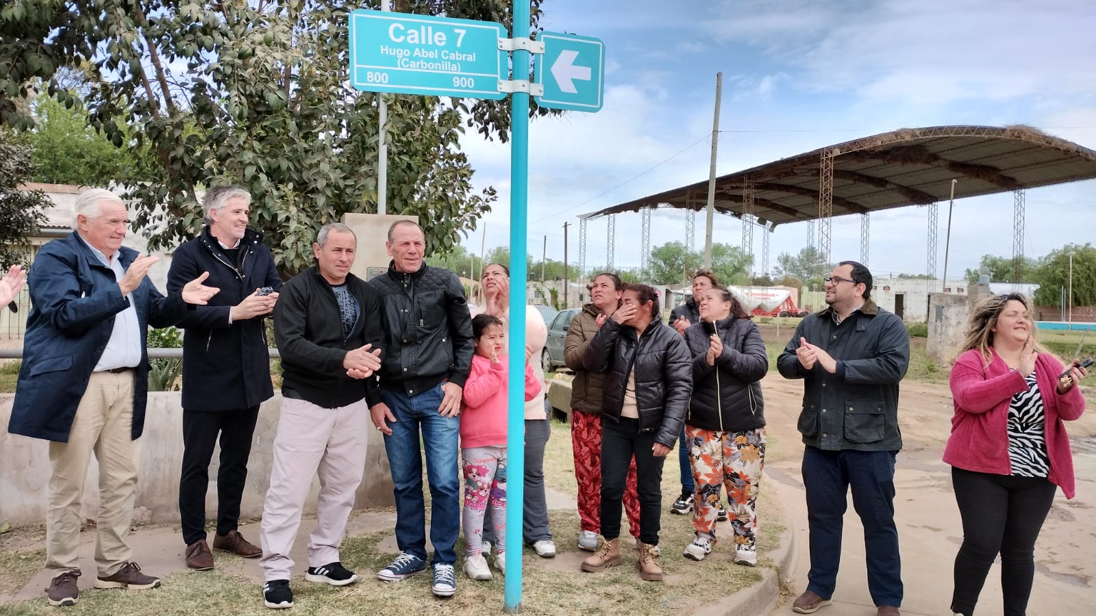 Este sábado se realizó el acto de imposición del nombre de Hugo Abel Cabral “Carbonilla” a la calle 7 entre 34 y 46 del Barrio Matadero. La ordenanza, sancionada con el número 1631/21 por el Honorable Concejo Deliberante, quedó ejecutada hoy al colocar los carteles demarcatorios en las esquinas mencionadas. El acto, encabezado por el intendente, Facundo Diz, y familiares y amigos del recordado “Carbonilla”, contó con la presencia de autoridades del HCD de Navarro, vecinos, excompañeros de trabajo y militancia y bomberos voluntarios, entre otros.