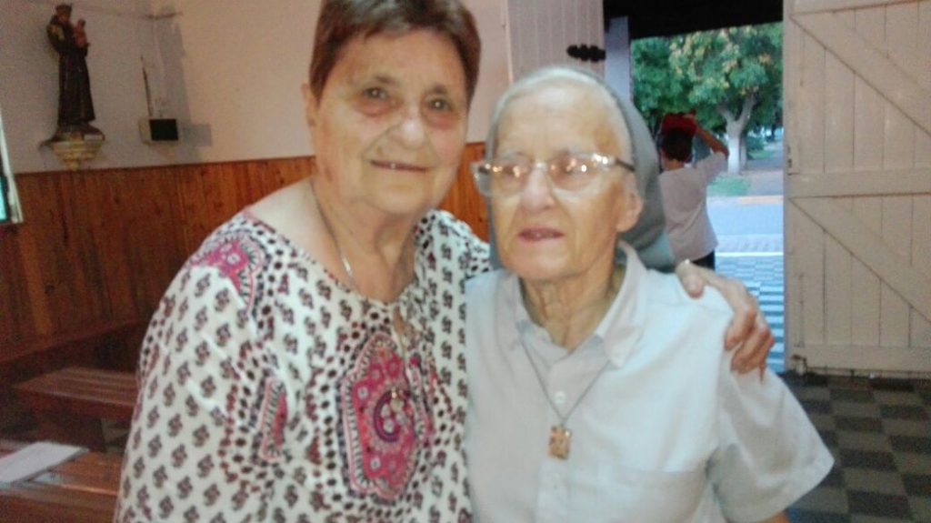 La hermana Catalina Fitzsimons, nacida y criada en Villa Moll pertenece actualmente a la orden de Las Carmelitas. Fue una integrante de la comisión pro templo de esa localidad del interior. De la primera comisión que se formó allá por 1954, según nos informan, ella sería la única persona que vive. Vino a pasar Semana Santa con sus hermanos, sobrinos y familiares. En la foto, la vemos junto a quien para mí tiene el color de ojos más hermosos que he visto, Yoli Eyherabide de Casado (amigas de toda la vida). Actualmente está residiendo en Chile.