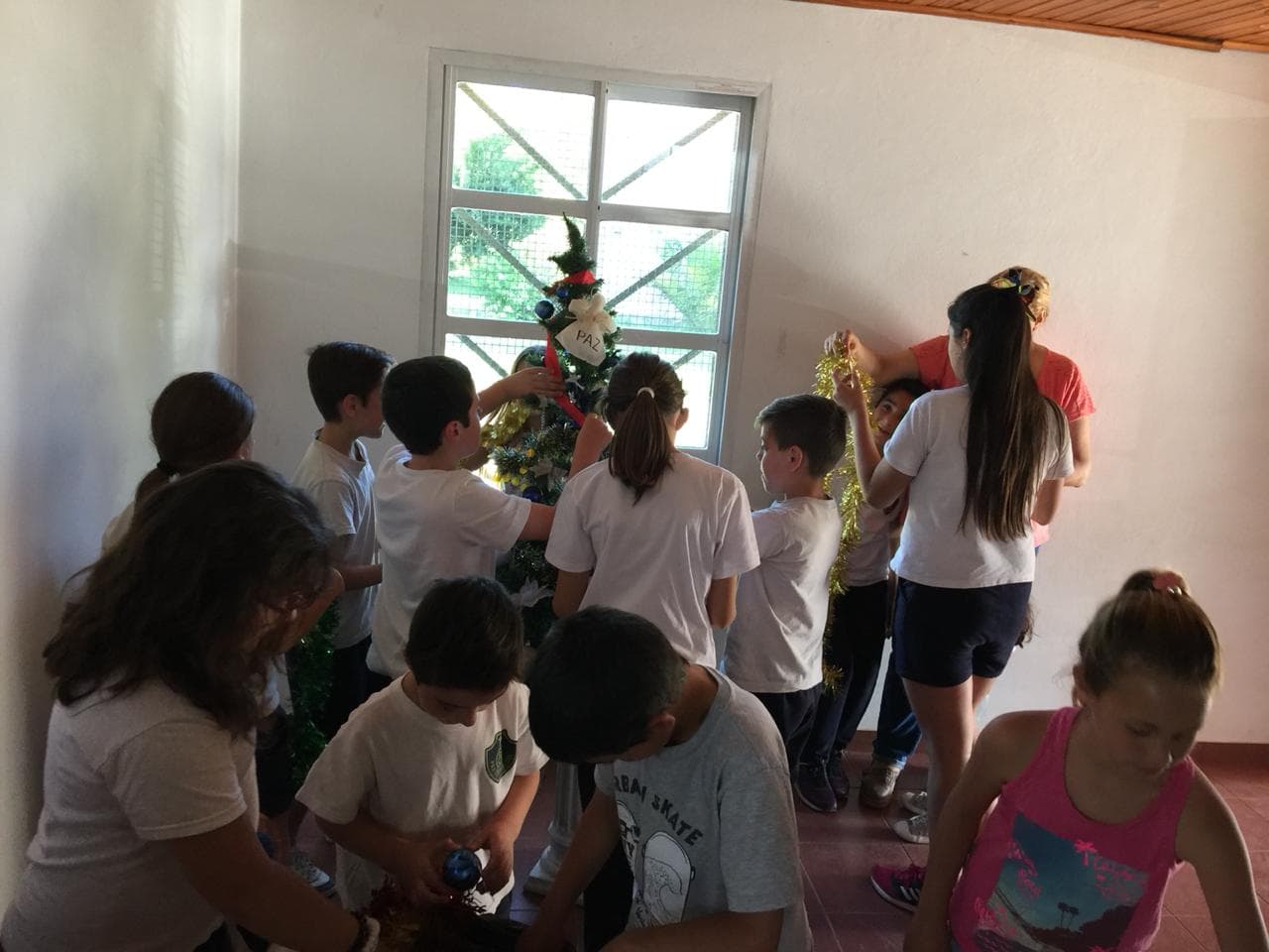 LA ALEGRÍA DE LOS CHICOS EN EL ARMADO DEL ARBOLITO DE NAVIDAD.