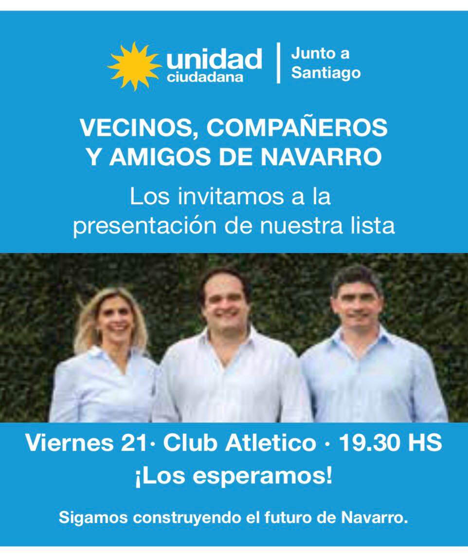 Posteriormente, a las 19,30 en el Club Atlético, lo hará Unidad Ciudadana.