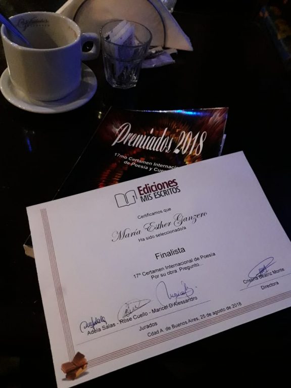 Hoy en el Café Patagones de Boedo, C.A.B.A,  Marta recibió el diploma de finalista en el 17° Certamen Internacional de Poesía y Cuento. Además integra por eso, la Antología Premiados 2018 de Editorial «Mis Escritos». Fue una hermosa tarde de letras y luego se realizaron rondas de lectura entre los presentes según pudimos saber. Felicitaciones […]
