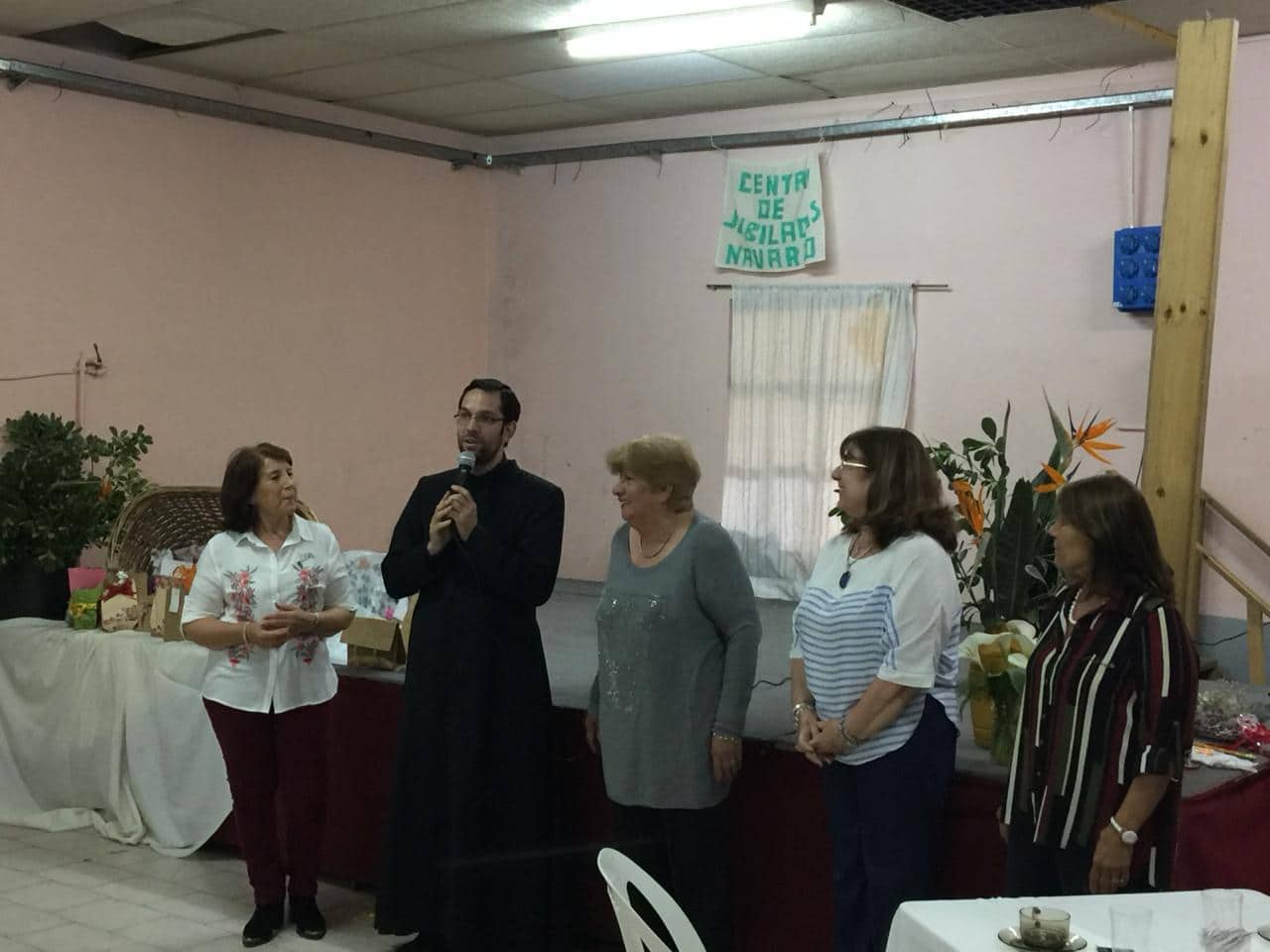 Recibimos al Padre Pablo, quien bendijo los alimentos y luego compartió un momento con todas las socias y dirigentes.