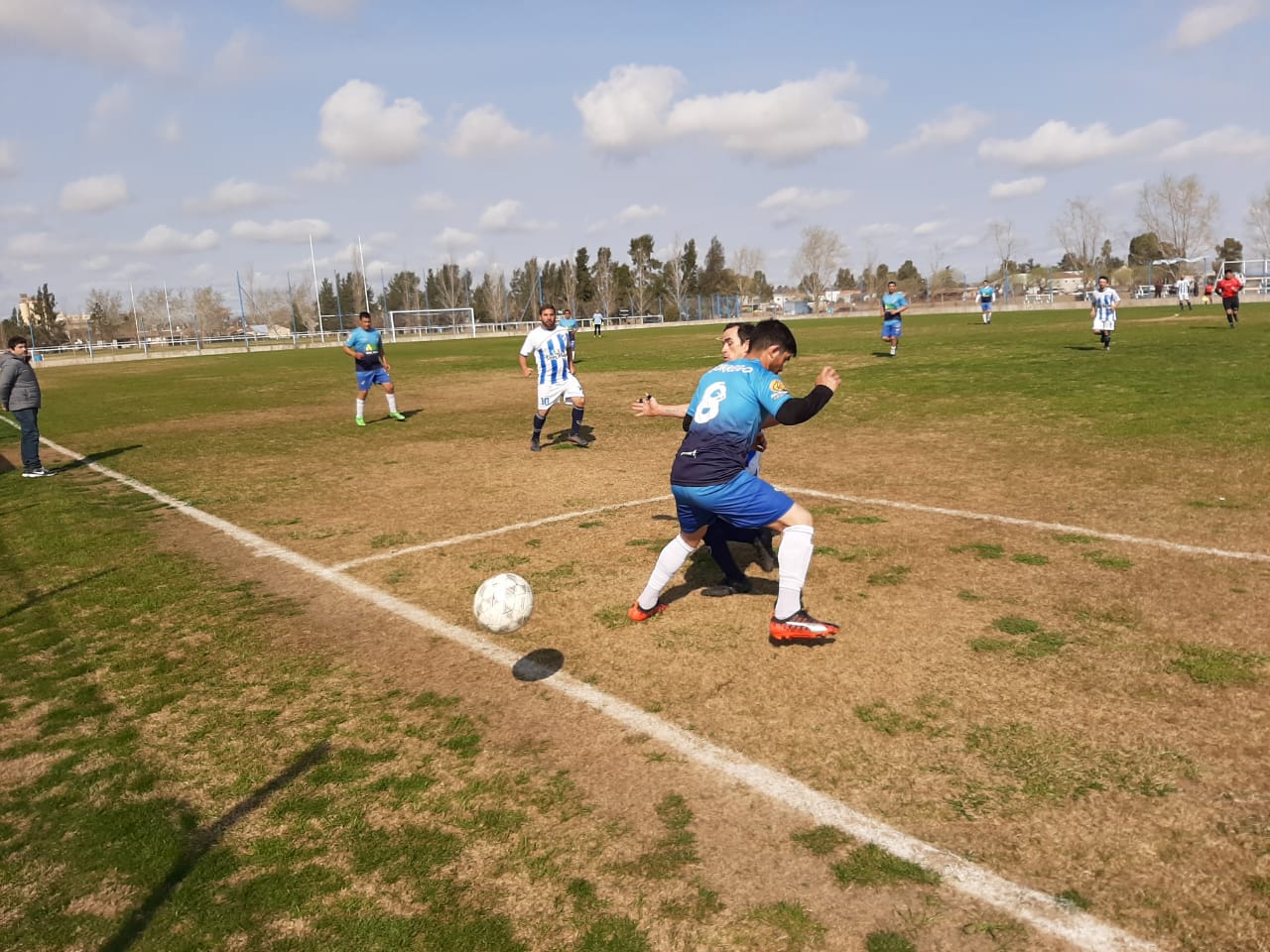 Luego llegó el turno de las segundas. Un partido que comenzó con Dorrego manejando las acciones hasta que el árbitro marcó un penal a su favor. Oscar Luján remató y el arquero de Provin se lo sacó con los pies. A pesar de eso, Dorrego siguió insistiendo y el propio Oscar Luján puso las cosas 1 a 0 poco después. El asedio celeste continuó durante el primer tiempo con el viento a su favor pero no pudo estirar el marcador y llegó el empate en 1. El segundo tiempo fue muy diferente, con mucho cansancio en los jugadores de Dorrego y Provincial manejando el tema del viento a su favor. Con un par de contras veloces el equipo de Empalme se puso 3 a 1 y siguió manejando las acciones hasta el final.