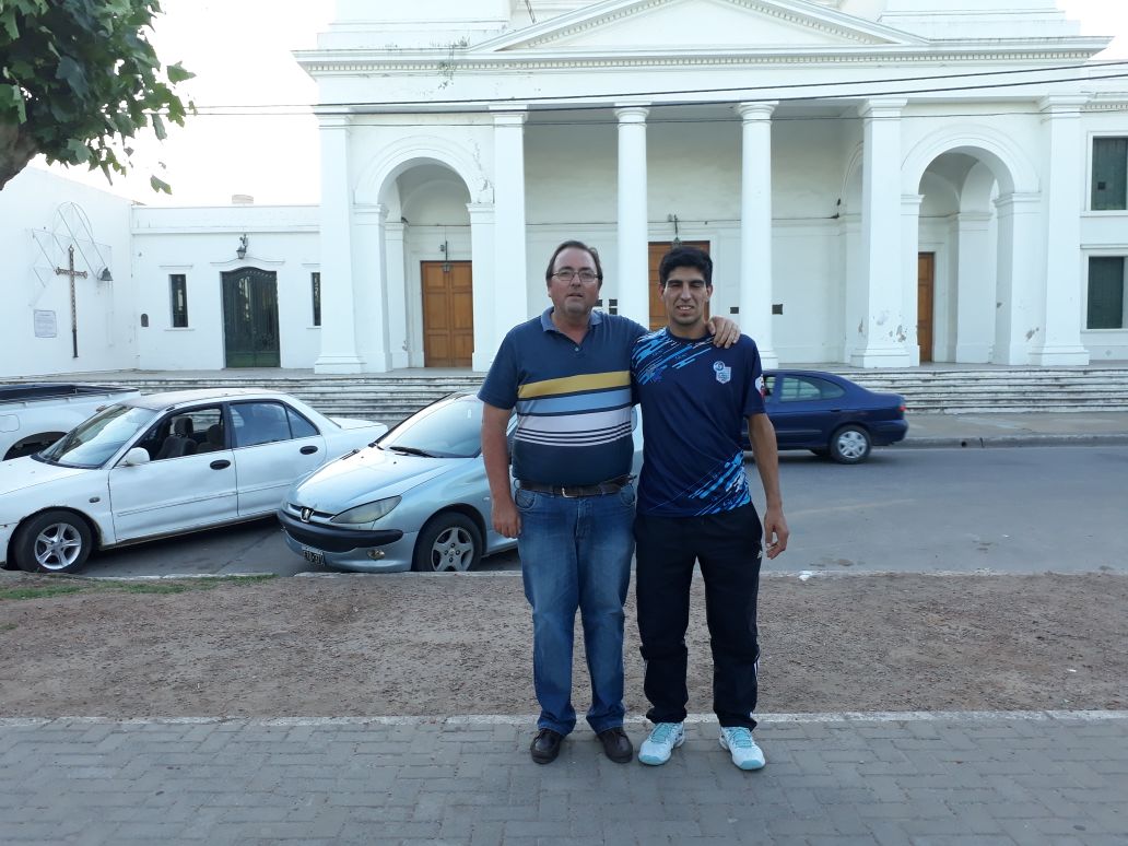 Allí se congregaron periodistas, familiares, amigos y vecinos de Navarro para esperar a Sabrina y a Elías y celebrar con ellos la obtención del Campeonato Mundial de Trinquete Categoría Sub 22.