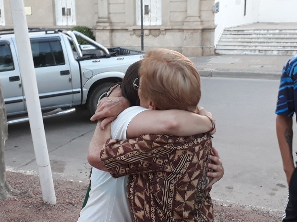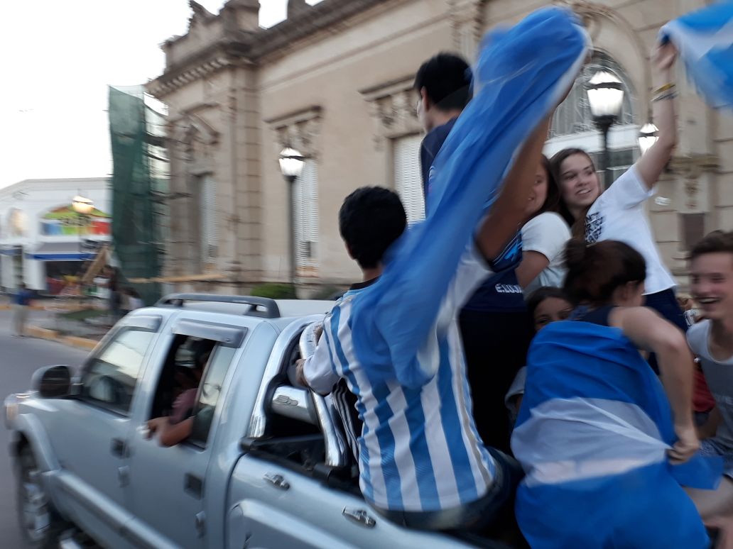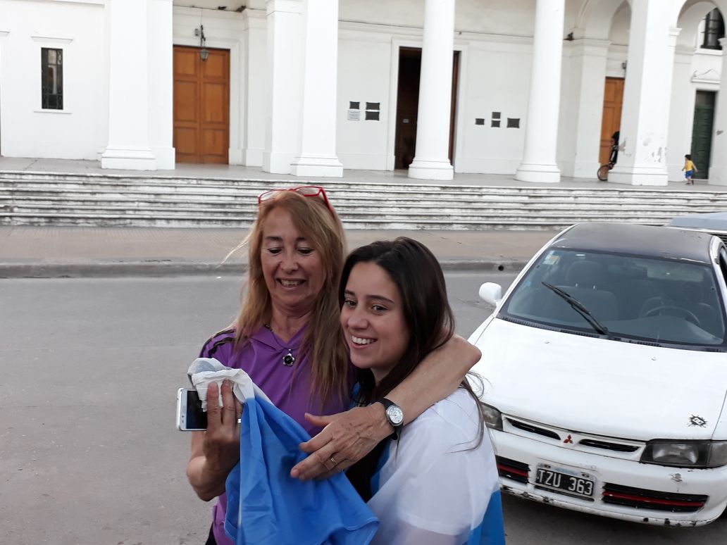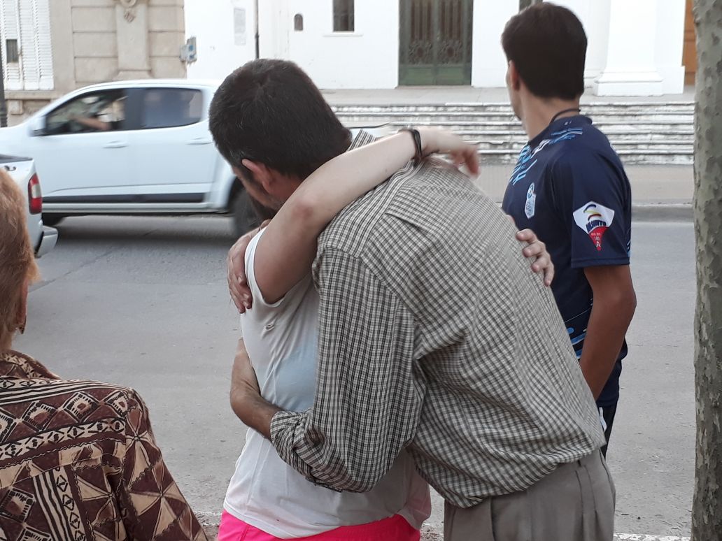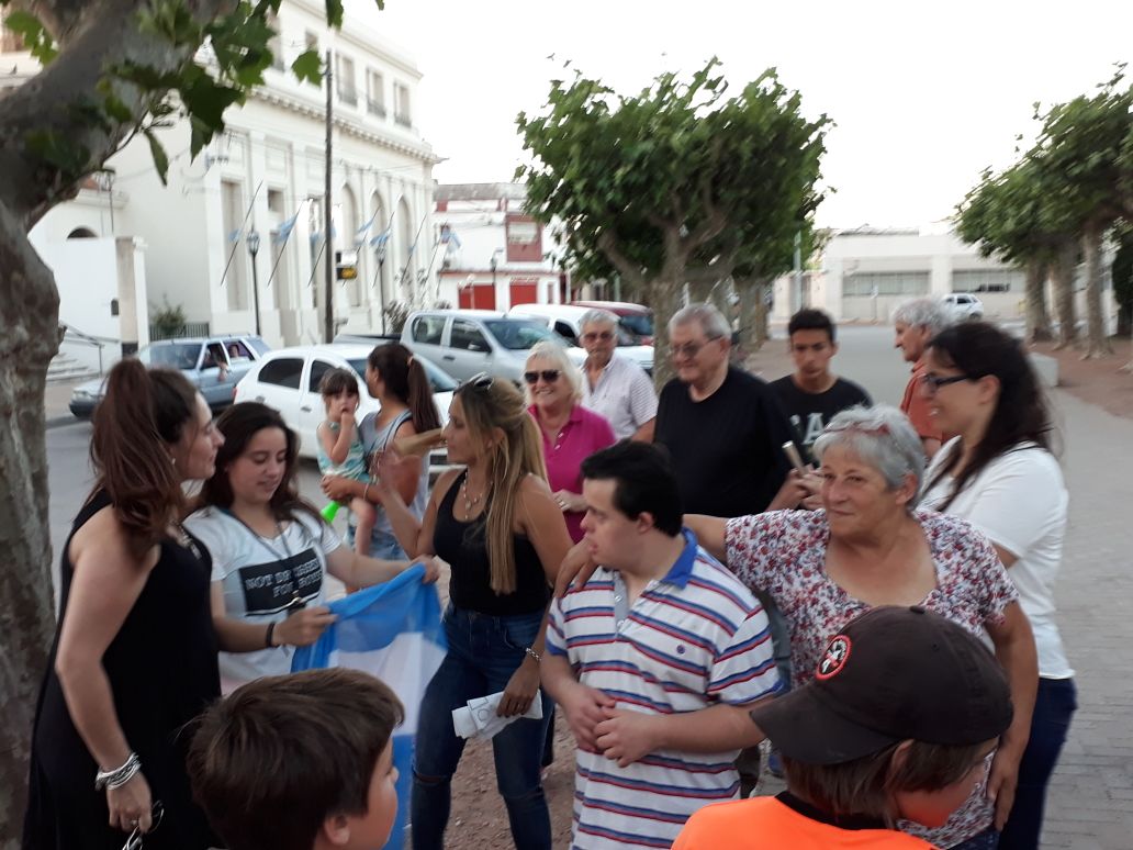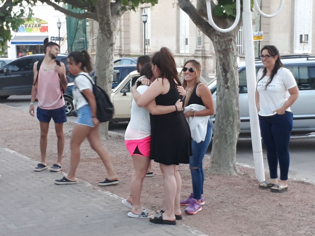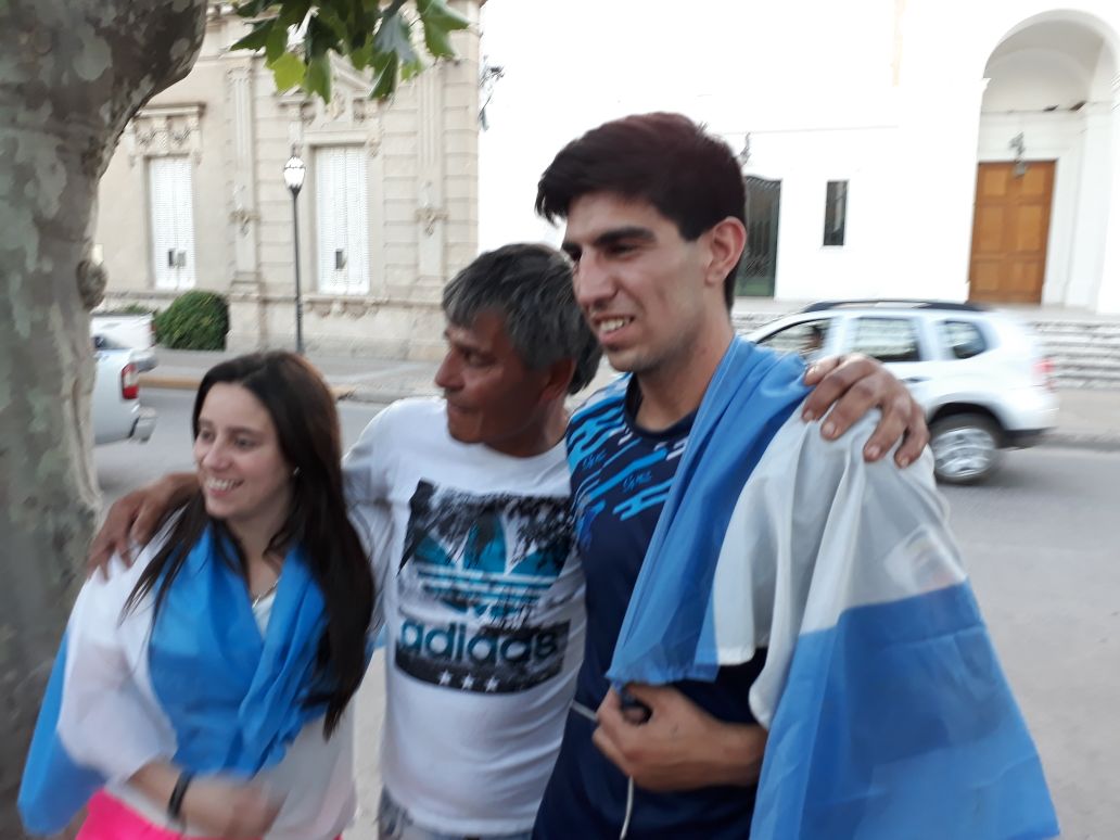 Espontáneamente durante las últimas horas de la tarde, un grupo de amigos y conocidos de los chicos decidieron organizarles una bienvenida en la plaza principal.