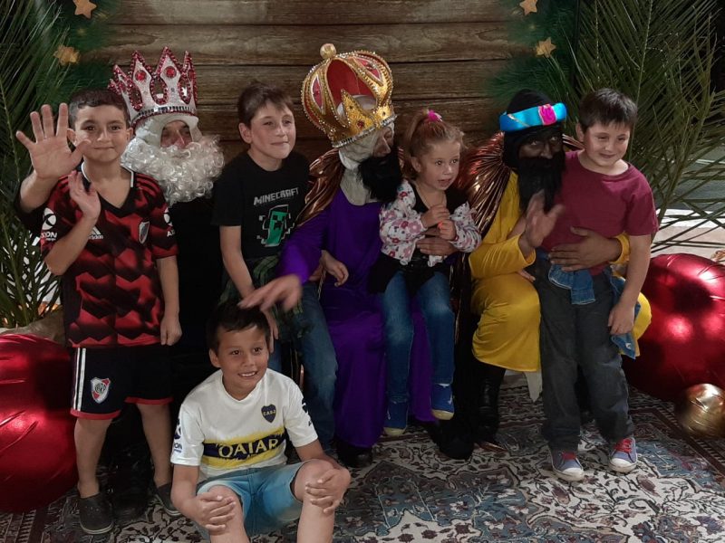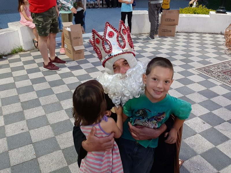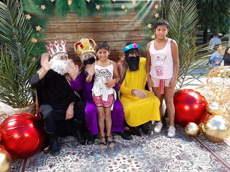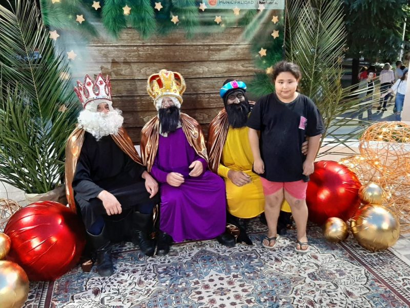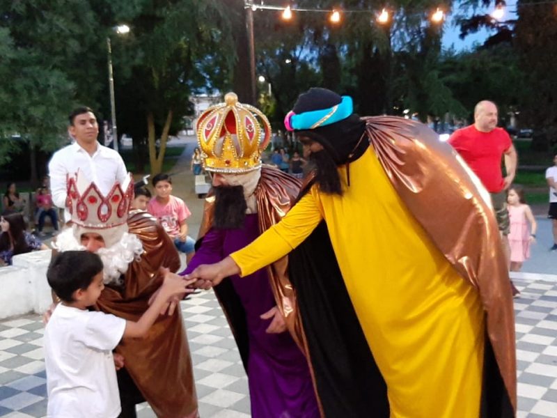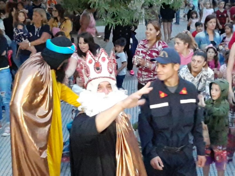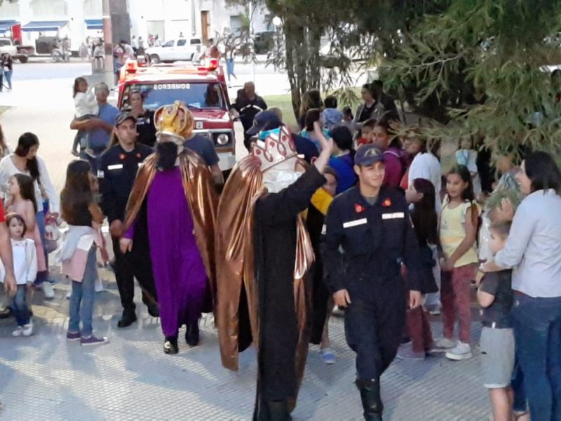 Para alegría de cientos de chicos, los Reyes Magos se hicieron presentes esta tarde en la Plaza San Lorenzo. Invitados por la Municipalidad, llegaron escoltados por nuestros bomberos y repartieron golosinas a todos los chicos presentes, además de sacarse un foto con ellos.