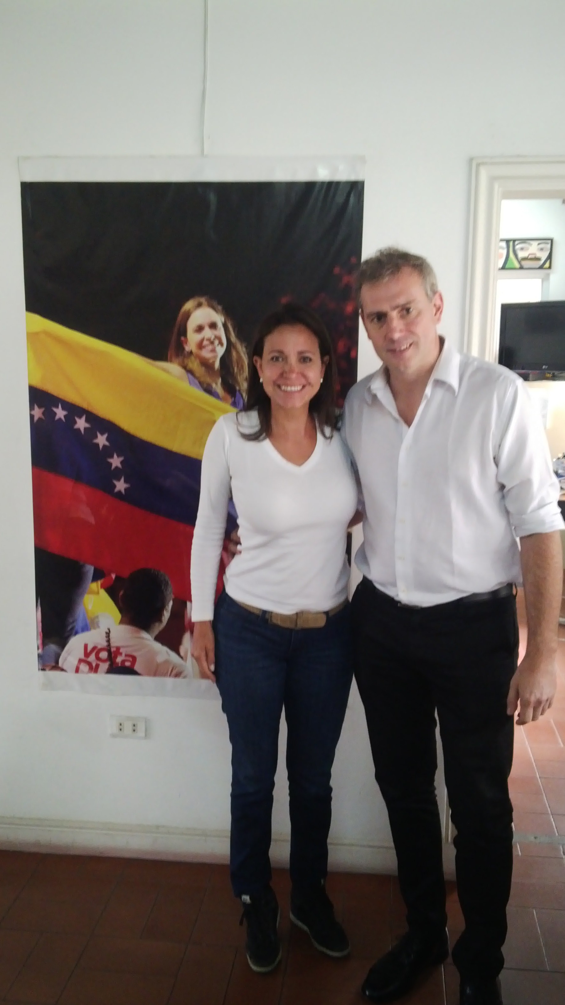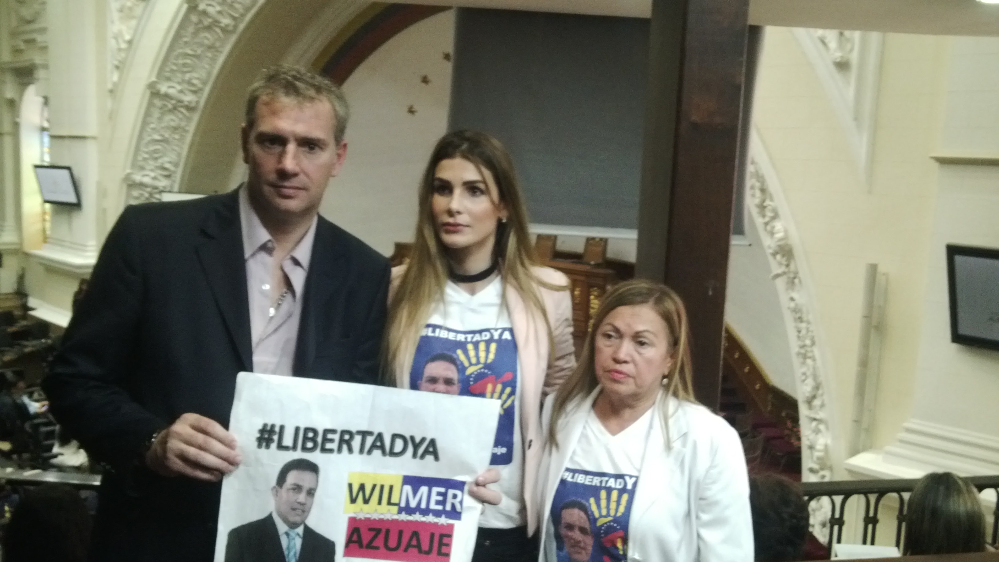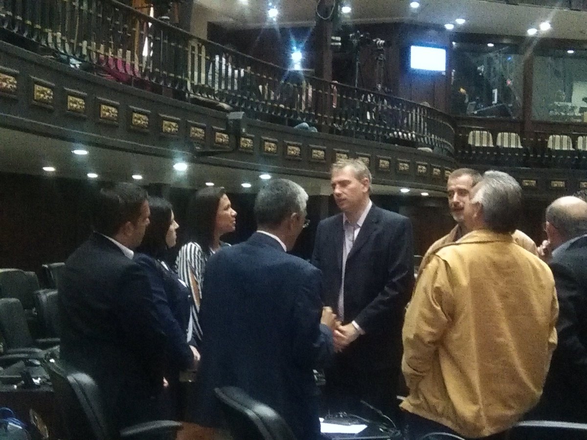 Me recibió María Corina Machado, que más allá de ser la líder de Vente Venezuela, goza de una gran popularidad porque es una dirigente que ha tenido una gran coherencia en el tiempo y es la que ha explicado de mejor manera que el régimen de Maduro estaba dispuesto incluso a matar a sus compatriotas con tal de no brindar una salida democrática y pacífica. Entonces ella fue quién de alguna manera me permitió (a través de sus diputados, con quienes me propuso un contacto rápidamente) ir a la Asamblea Nacional y ser un invitado especial a la sesión que se dio el martes 9 en el Hemiciclo (que sería el Congreso). Ella fue muy generosa, ya que notificó de mi visita y la agenda que yo iba a tener, a todos los demás líderes opositores. Fui recibido por los diputados de María Corina y rápidamente comencé a interactuar con los presidentes de los demás bloques que me fueron presentados, que son Voluntad Popular (el partido de Leopoldo López y Lilian Tintori), Primero Justicia que es el partido de Capriles, Acción Democrática, y otros partidos de la oposición. Entonces en definitiva, interactué con todos los líderes del arco opositor. La actividad de la Asamblea Nacional, el martes 9 fue muy significativa porque incluso el Director de Protocolo y Ceremonial de la Asamblea Nacional me recibió muy calurosamente. Dio unas palabras de bienvenida y nombraron mi presencia en el pleno de la Asamblea. Me aplaudieron de pie los diputados de todos los bloques. La bancada del gobierno no estaba presente. Sus bancas estaban vacías y lo hacen regularmente. Han abandonado la Asamblea Nacional, no les interesa. El presidente de esa bancada es Diosdado Cabello, que es el jefe del narcotráfico que maneja el gobierno. Antes era el presidente de la Asamblea Nacional, hace un año perdieron las elecciones y ahora el presidente es Borges de la oposición y el Chavismo ya ni asiste a las reuniones. Han logrado a través del Tribunal Supremo que se invaliden sistemáticamente todas las actividades, las leyes y todo lo que hace la Asamblea Nacional. Debo resaltar que los diputados no cobran hace 10 meses, es decir, prácticamente desde que asumieron y eso les imposibilita llevar adelante la tarea legislativa y política. Como los pagos vienen de tesorería y se efectúan desde el Ejecutivo, no les pagan, porque la Asamblea Nacional no produce nada y no puede tener dinero para garantizarse el pago de los sueldos y todo lo operativo. El sueldo que ha fijado el gobierno para los diputados actualmente, es de 9 dólares y ni siquiera se los pagan. Me permitieron poder exponer sobre estos vínculos que denuncié entre el Kirchnerismo, el Chavismo y las F.A.R.C., situación que no generó sorpresa y pero si generó hacia mi persona un gran reconocimiento. Incluso me sorprendió que supieran que fui una de las primeras personas que denunciaron a los Kirchner en la Argentina. La jornada fue muy emotiva. En el orden del día se trató el rechazo a la Constituyente de Maduro, y un repudio a la detención y desaparición desde hace 10 días de Wilmer Azuaje, diputado nacional. Me solidaricé con la familia y se me hizo una nota que salió en la televisión venezolana hablando de la situación. Lo último de la reunión fue una comunicación vía Skype con Almagro, secretario general de la O.E.A., que informó todas las gestiones que está haciendo el organismo para intentar una salida democrática en Venezuela.