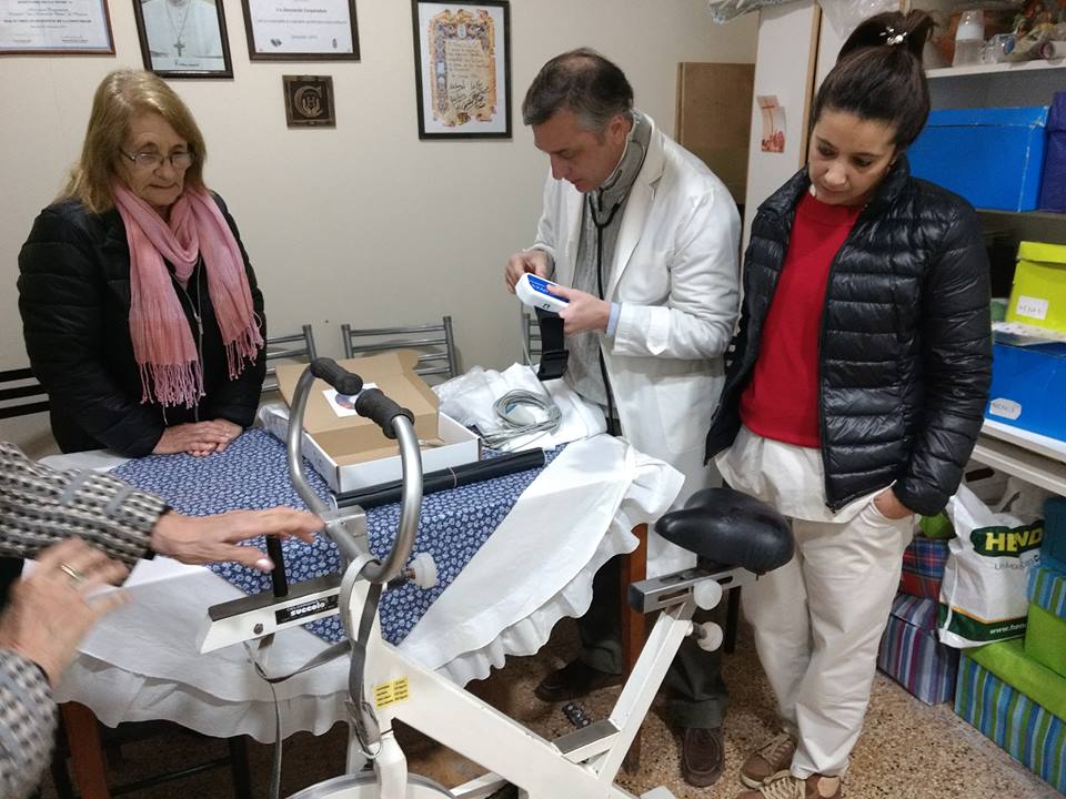 Tal como fuera anunciado la semana pasada,en el día de la fecha,la Cooperadora del Hospital «San Antonio de Padua» hizo entrega al Servicio de Cardiología de Consultorios Externos,representado por el especialista en Cardiología Dr. Manganielo y la Técnica, Srita. Funes ,un equipo de Ergometría con 12 derivaciones, para poder realizar estudios de esfuerzo.