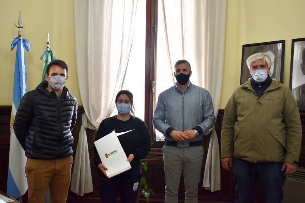 La atleta se reunió este lunes con el intendente Facundo Diz quien se interiorizó sobre el mundial, charlaron de temas deportivos y de la preparación para la tan importante competencia. La Municipalidad de Navarro le otorgó un subsidio para que Sabrina pueda afrontar parte de los gastos de preparación para la competencia. Diz, que estuvo acompañado del jefe de Gabinete, Diego Barrado y del secretario de Deportes y Recreación, Jorge Diz, le deseó éxitos en esta competencia y le agradeció por dejar el nombre de nuestro pueblo bien alto en el mundo.