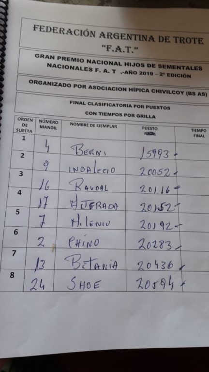 Les debíamos el informe final del Nacional de Nacionales de trote en el Hipódromo de Chivilcoy.